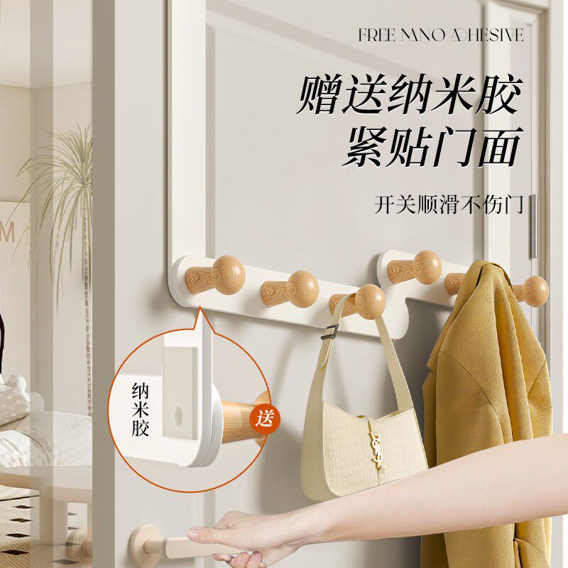 新款门后挂衣架挂钩免打孔门上门卧室挂衣服神器置物架厨房加长