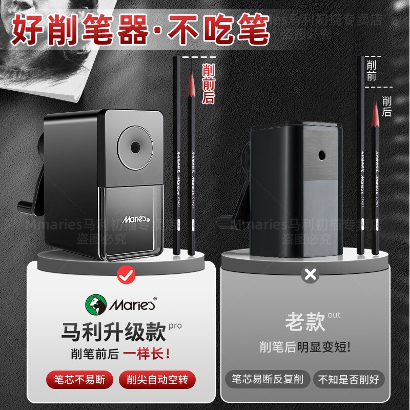 马利素描削笔器美术生专用削笔刀卷笔刀手摇转笔刀速写炭笔铅笔刨笔机绞笔剥笔销笔钻笔刀修笔旋笔刀卷笔机