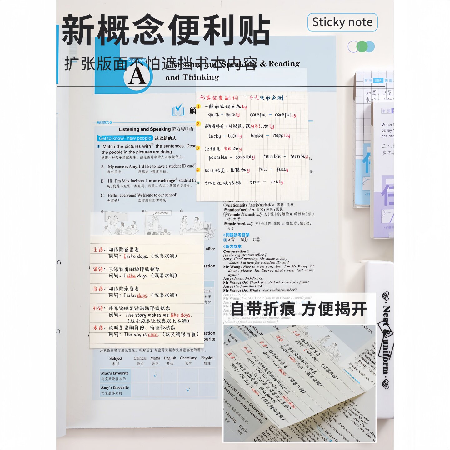 任意扩张贴便利贴不遮挡文字透明可折叠考研小学生用可撕有粘性便签贴纸初高中生记笔记贴订正错题办公便利贴