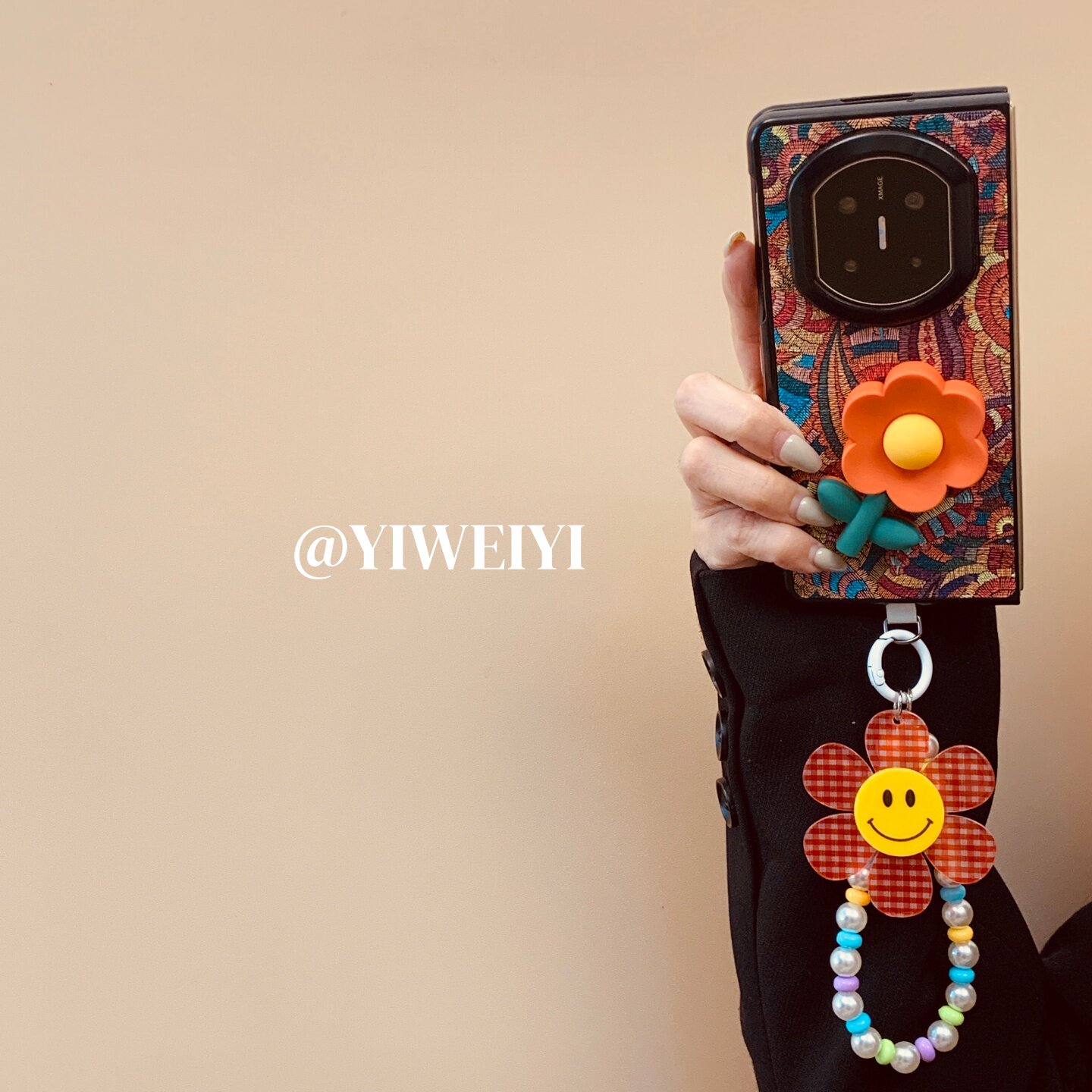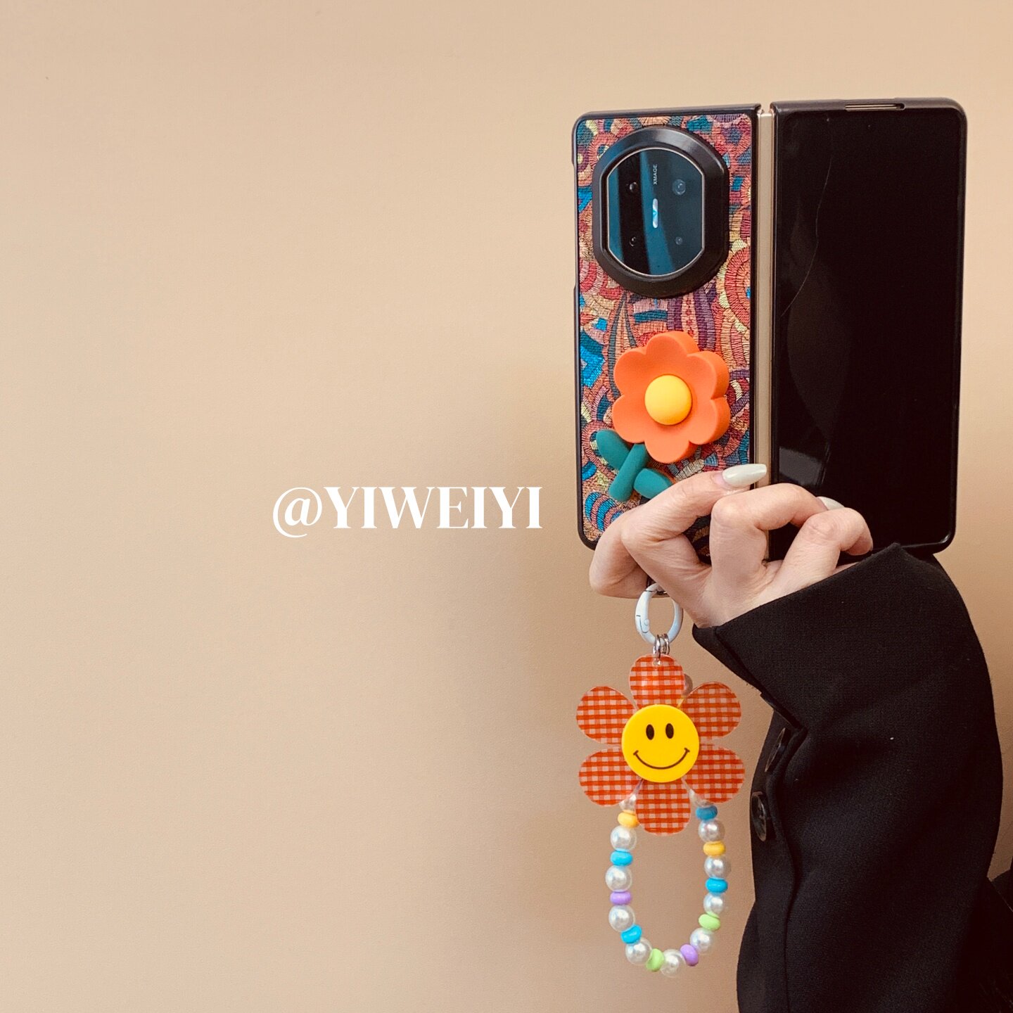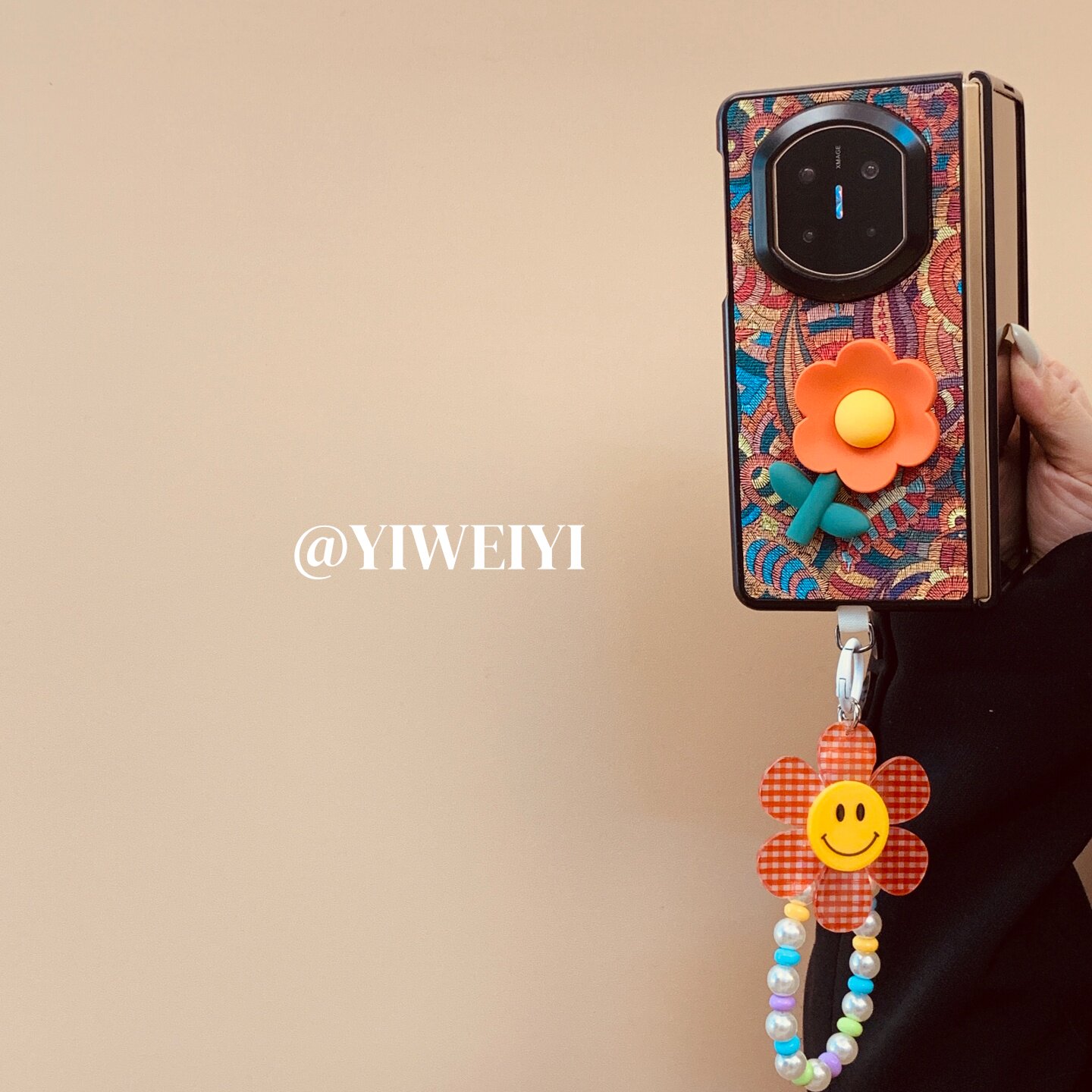 依维意 适用于华为matex7手机壳matex5典藏版硅胶花折叠屏matex6典藏版彩色腰果花matex3笑脸太阳花珍珠手链