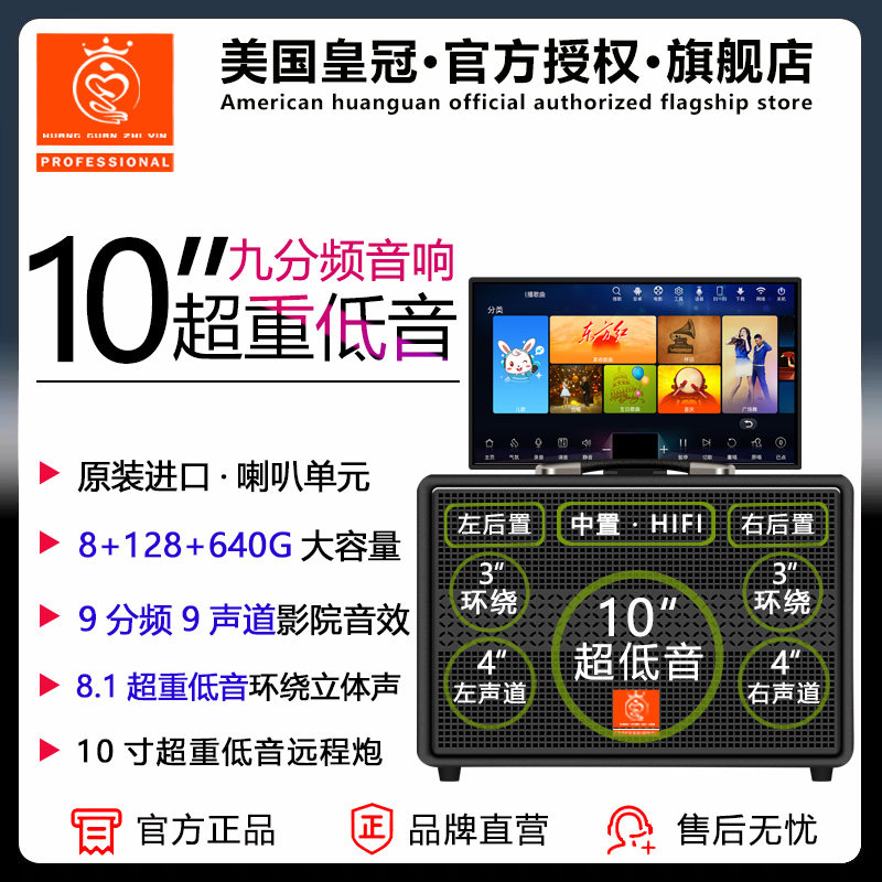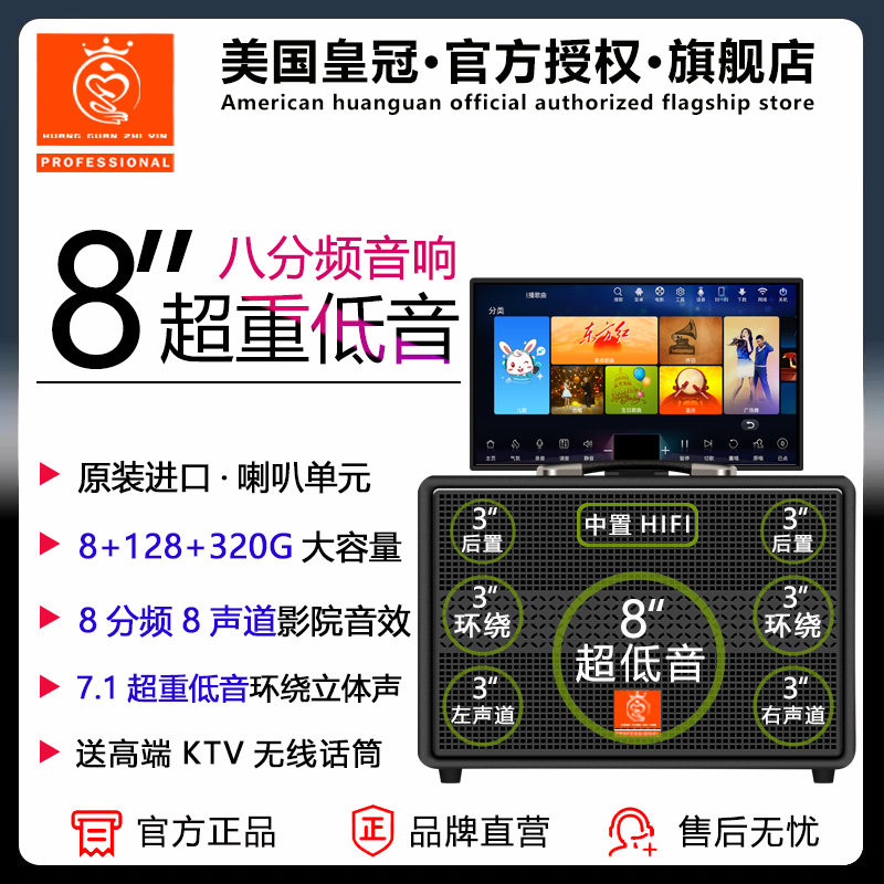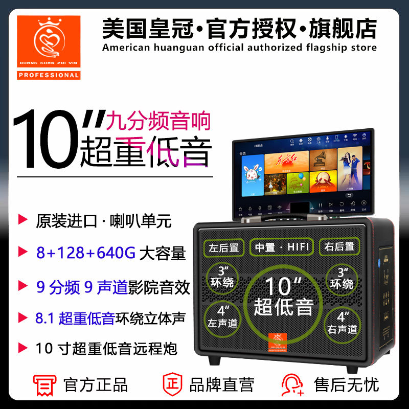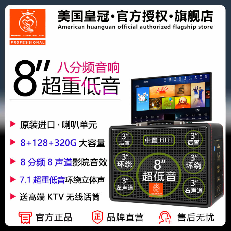美国皇冠之音 家庭KTV音响套装户外显示屏声卡直播广场舞点歌机箱