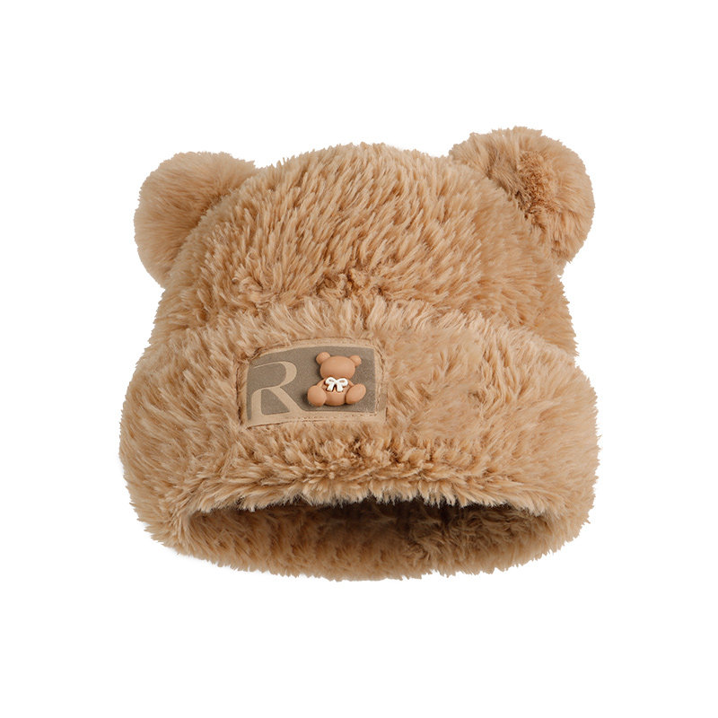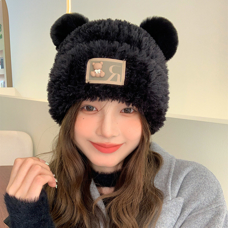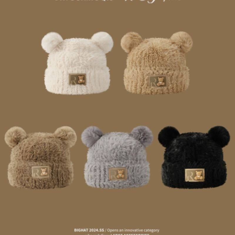可爱小熊耳朵毛绒帽子保暖毛茸茸毛线针织帽多规格