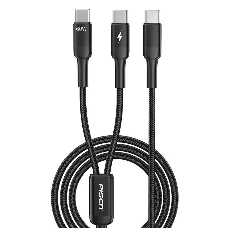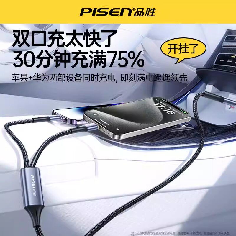 品胜数据线二合一充电线一拖二两头快充线60W快充适用iPhone17苹果华为小米三星安卓平板编织线车载通用