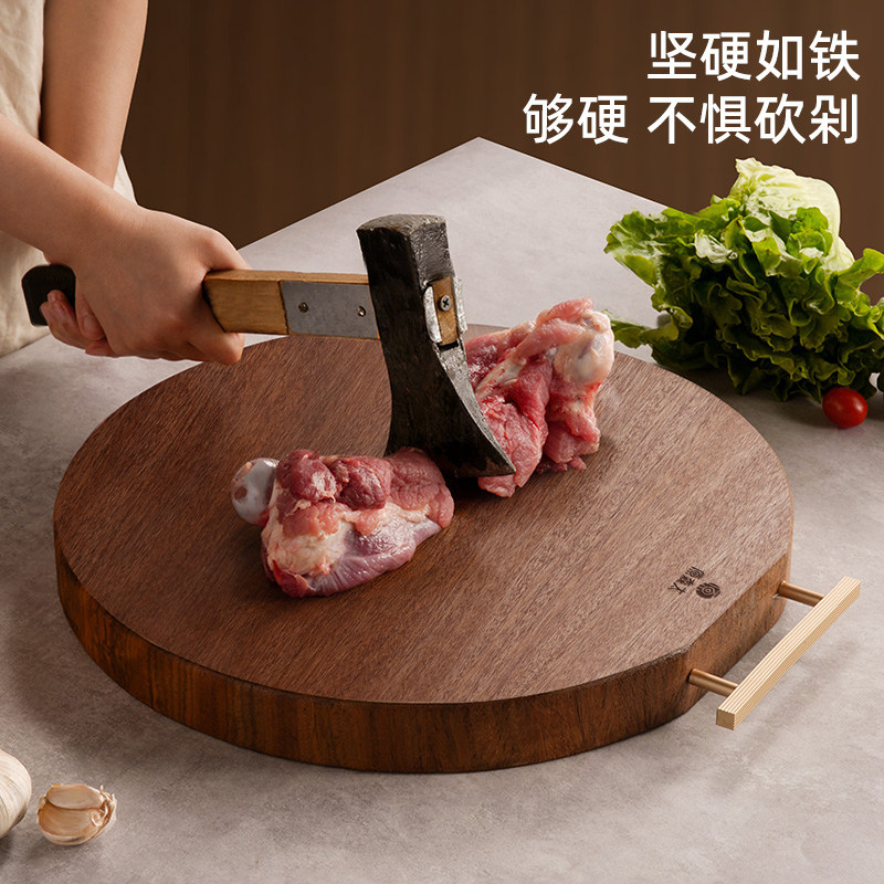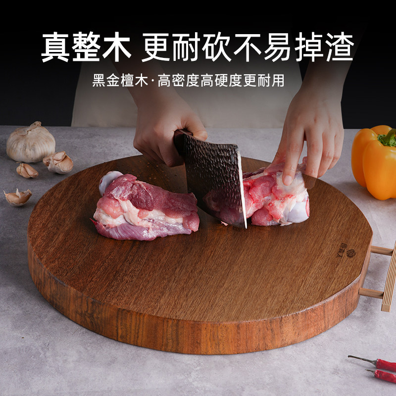 原森太圆形菜板防霉抗菌家用砧板黑金檀木整木案板实木切菜板整块