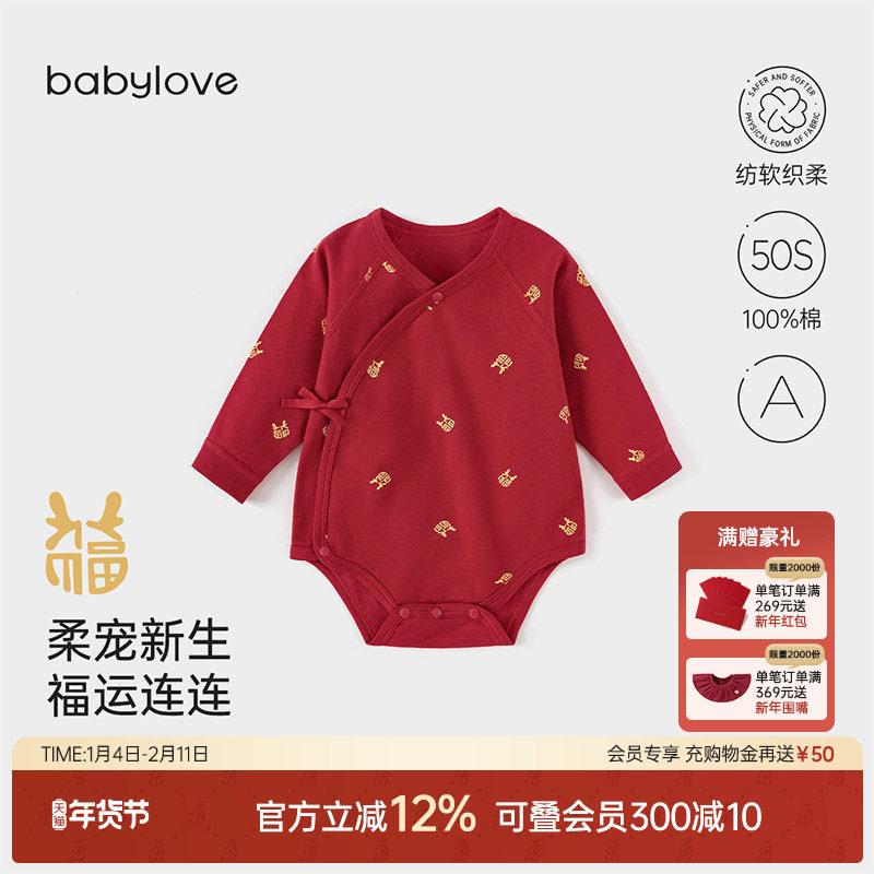 babylove【纺软织柔】婴儿包屁衣秋冬纯棉满月宝宝拜年服麒麟福宝