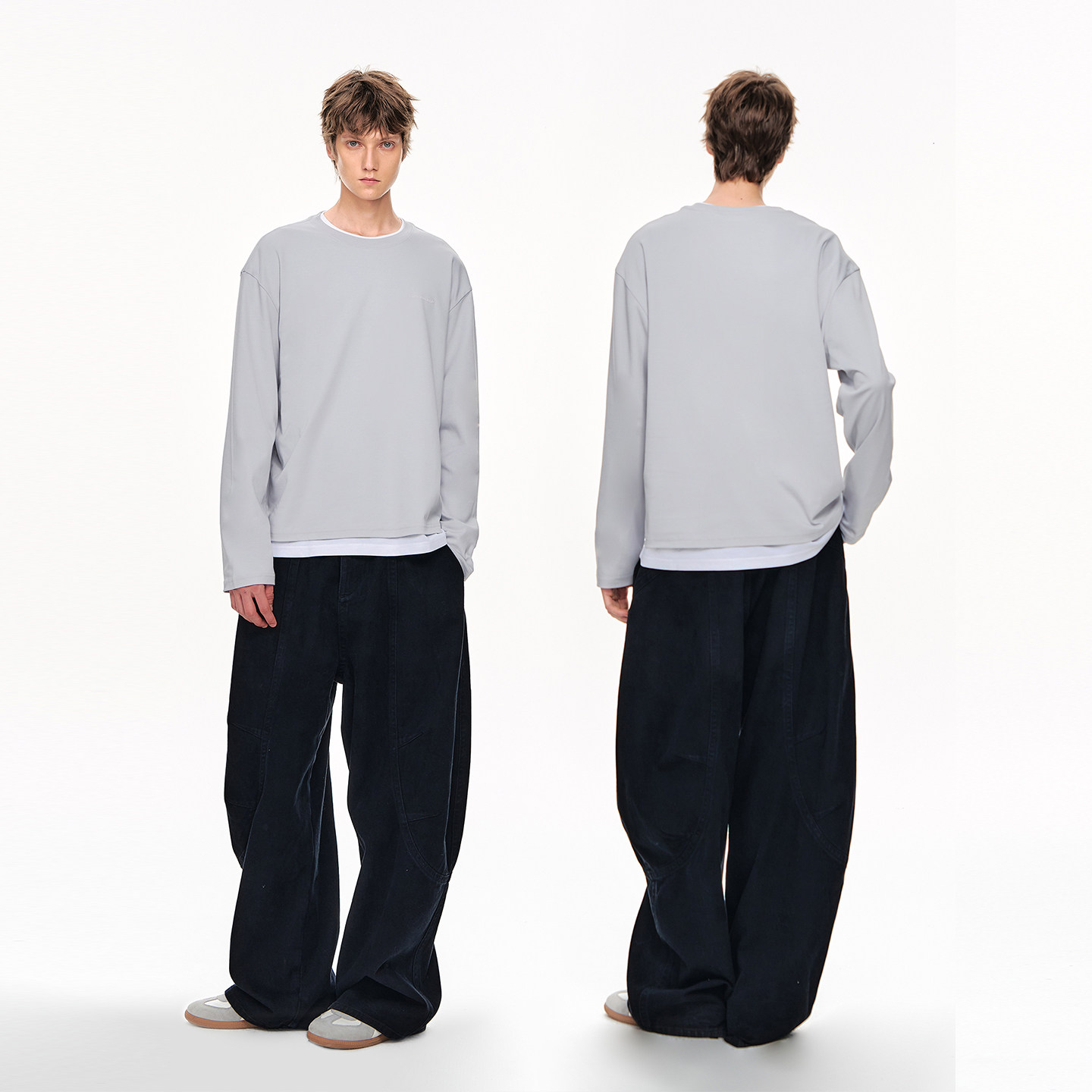INS纯棉25韩国ins复古基础款纯色秋季打底衫内搭男女长袖T恤bf风