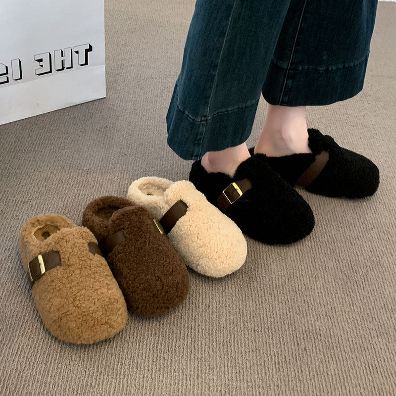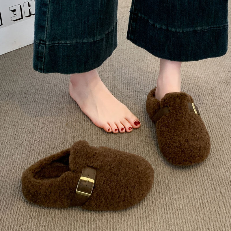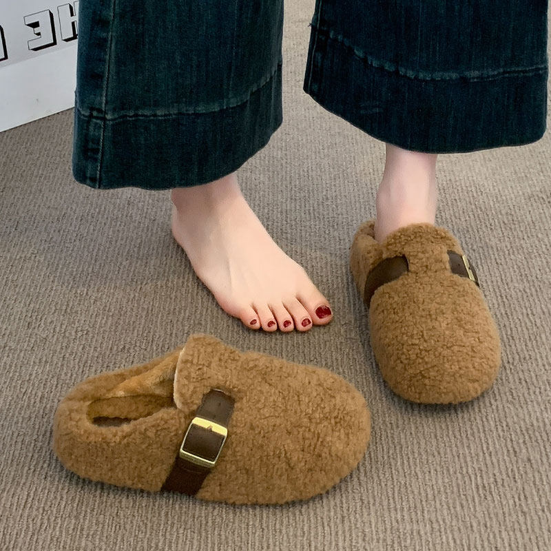 TATAFOCUS~加绒毛毛鞋韩版圆头皮带扣2025冬季新款勃肯鞋女35-28