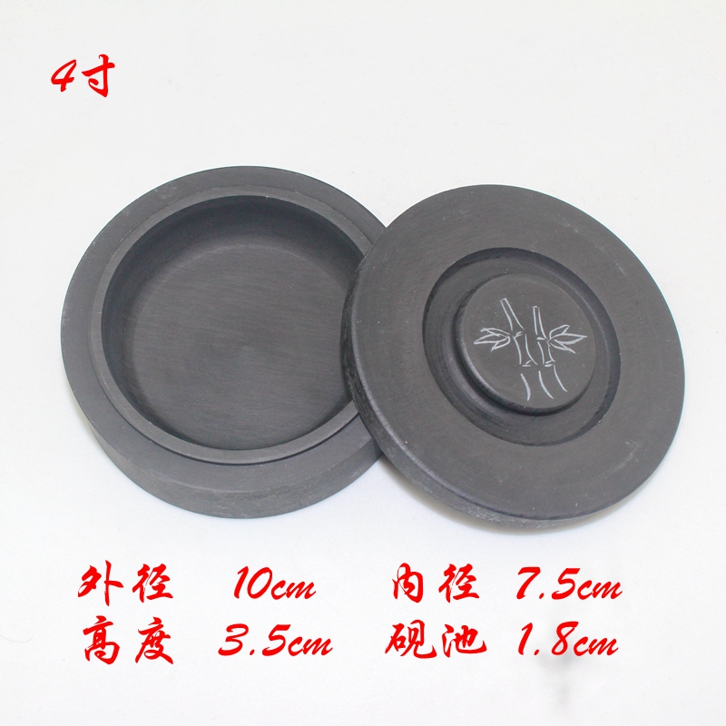 特价4寸带盖天然原石罗纹砚台学生用毛笔墨盒书法研墨磨墨条墨池
