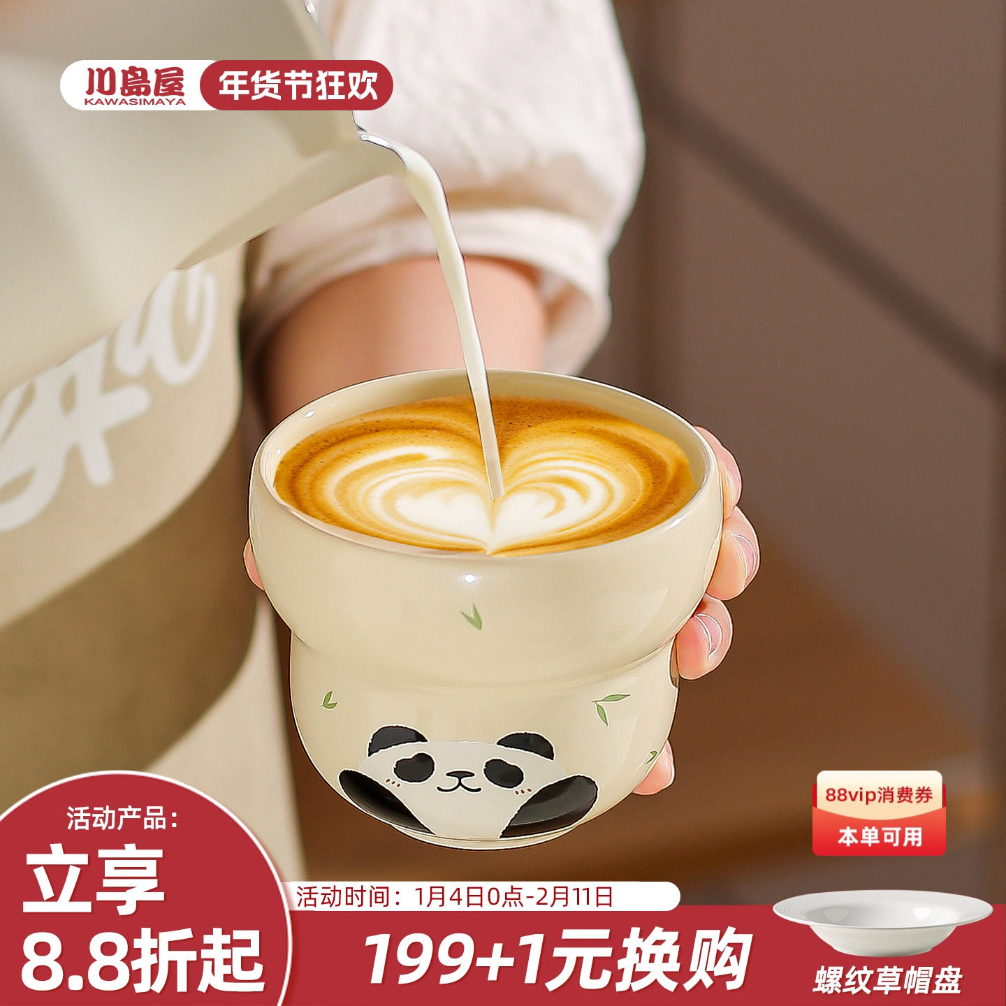 川岛屋熊猫手握咖啡杯陶瓷水杯家用女士高颜值马克杯可爱拿铁杯子
