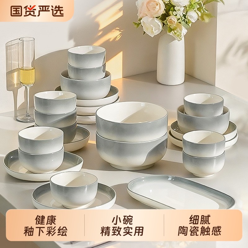 高级感碗碟套装家用2025新款简约碗盘乔迁碗筷陶瓷釉下彩餐具盘子