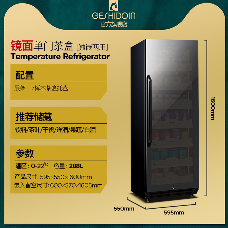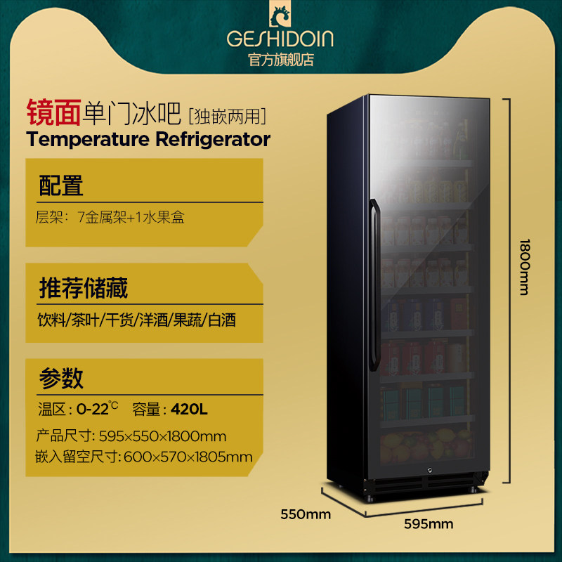 哥仕丹顿嵌入式冰吧家用客厅冷藏柜镜面玻璃门冰柜茶叶柜红酒柜