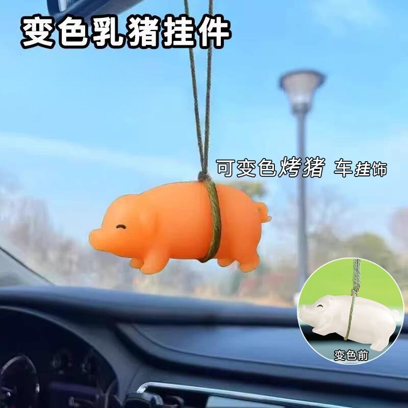 【烤乳猪挂件】车载变色烤猪汽车挂件创意装饰网红紫外线变色烤猪