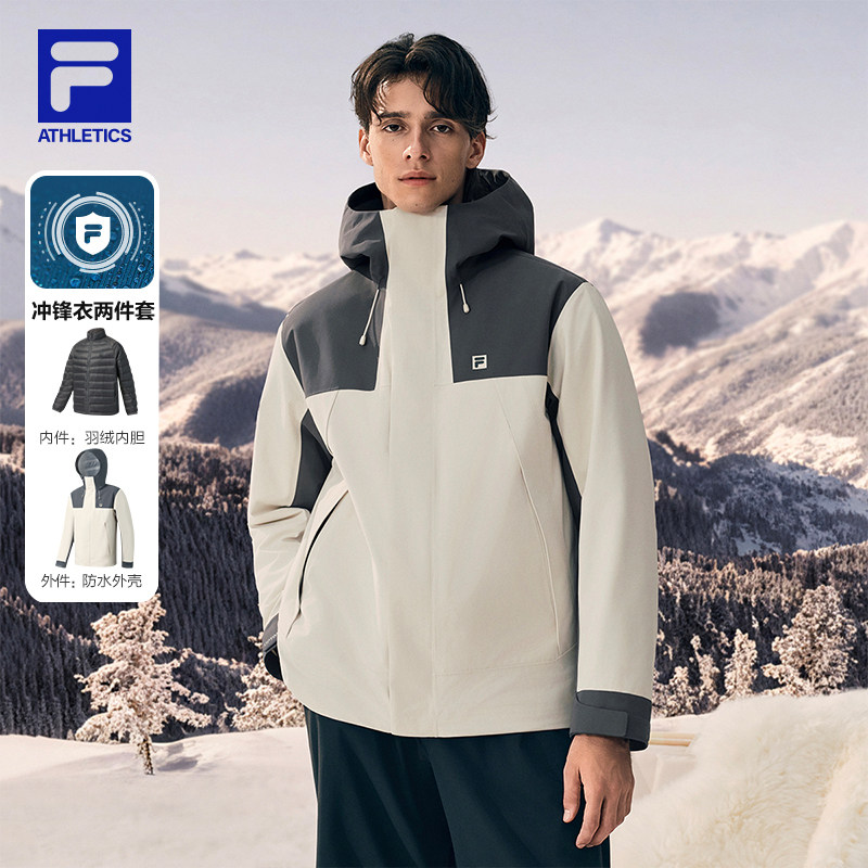 黄景瑜同款FILA斐乐男女款呼吸壳三合一冲锋衣25冬新户外羽绒外套
