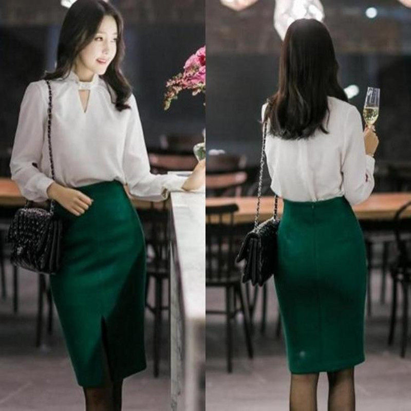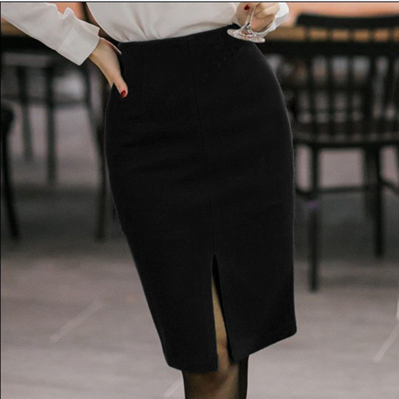 前开叉秋冬季半身包裙修身高腰过膝西装裙时尚一步裙OL职业中裙