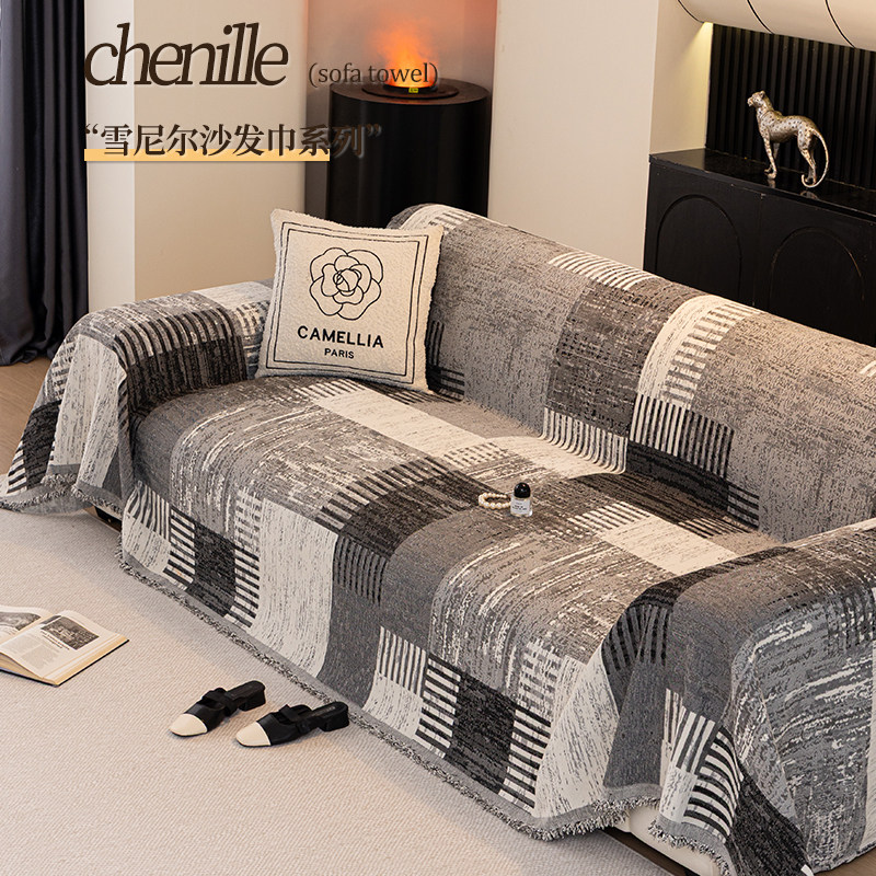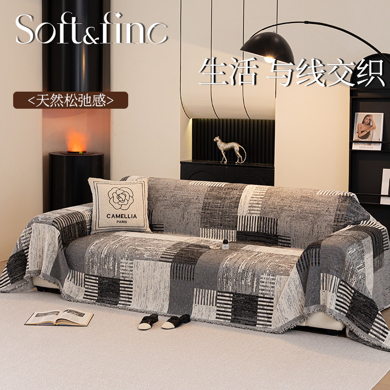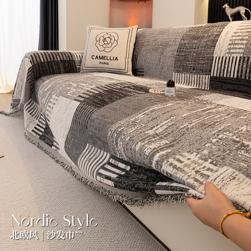现代简约ins风沙发垫方格耐磨沙发巾万能盖沙发盖防滑氛围客厅