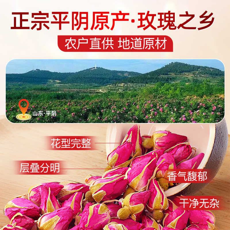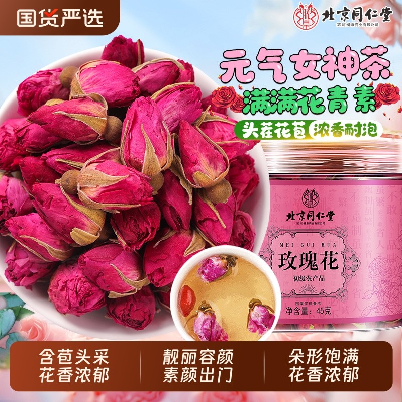 北京同仁堂玫瑰花茶干花重瓣玫瑰花大朵中草药材泡水泡茶官方正品