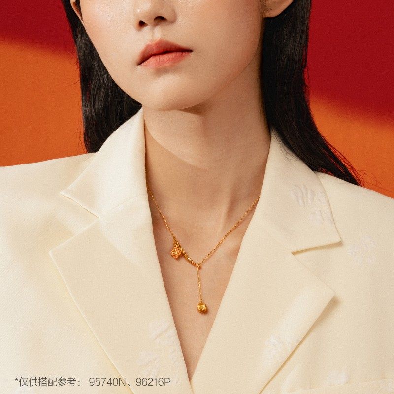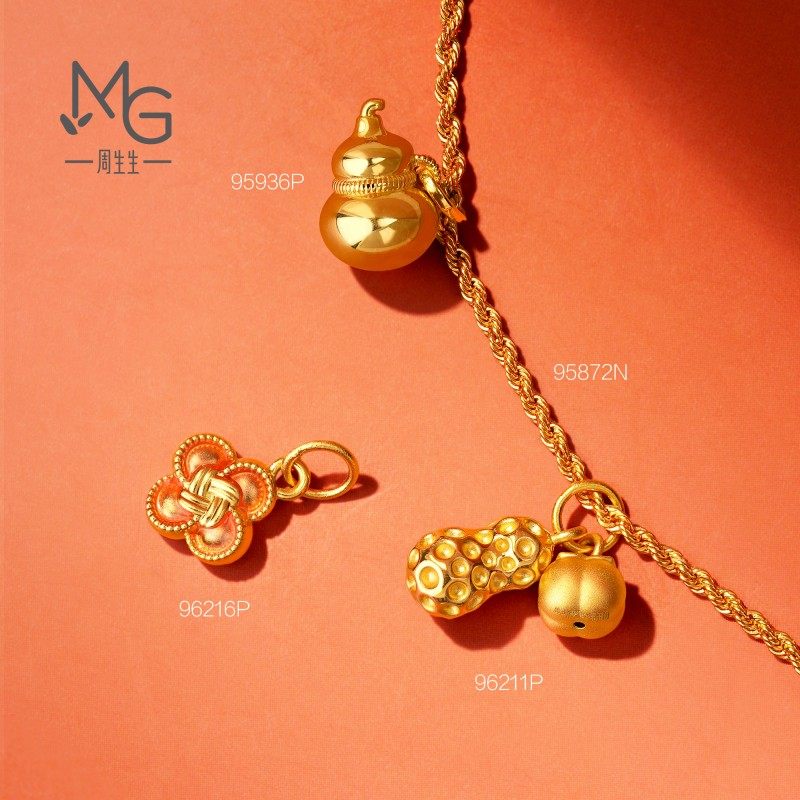 圣诞礼物周生生薄荷系列足金幸运如意结黄金小吊坠mini挂坠96216P