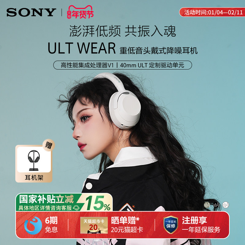 【国家补贴】Sony/索尼 ULT WEAR 头戴式无线蓝牙降噪耳机重低音