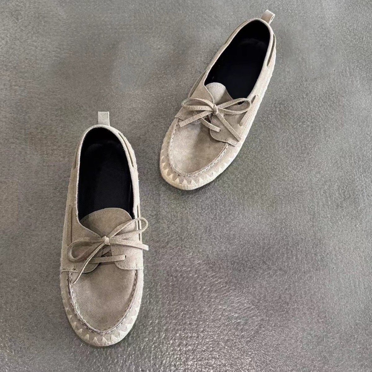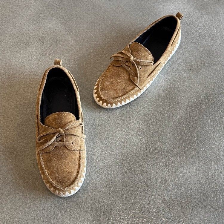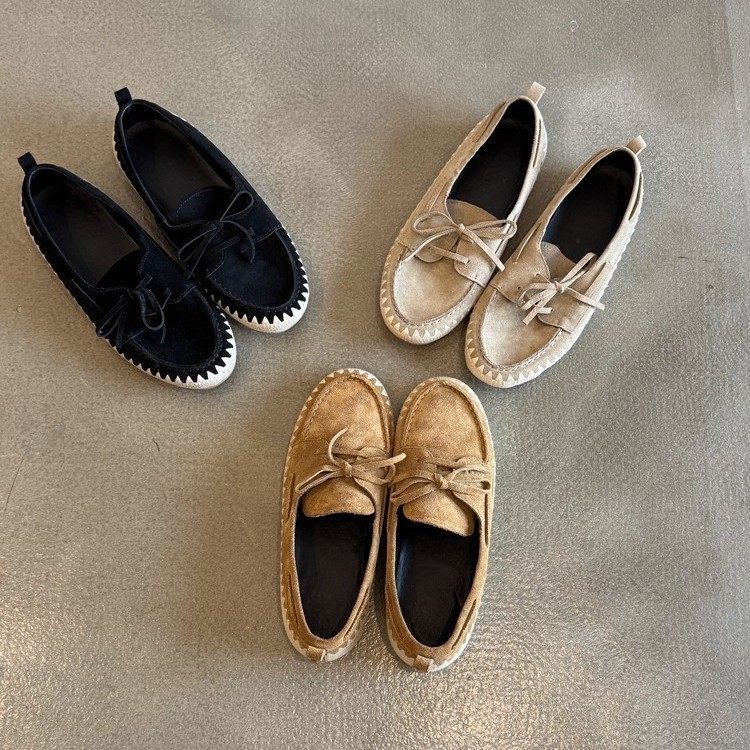现货复古蝴蝶结前系带平底单鞋女一脚蹬懒人渔夫编织软底乐福鞋