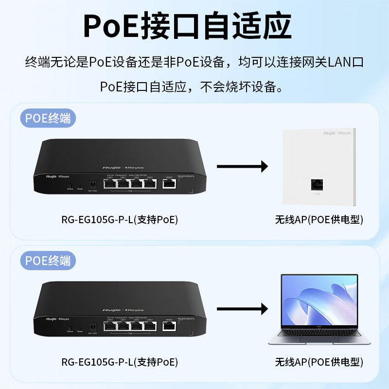 锐捷千兆有线路由器睿易RG-EG105G-P-L 企业级网关 POE供电AC管理控制器一体机 多WAN口 千兆带宽 官方旗舰店