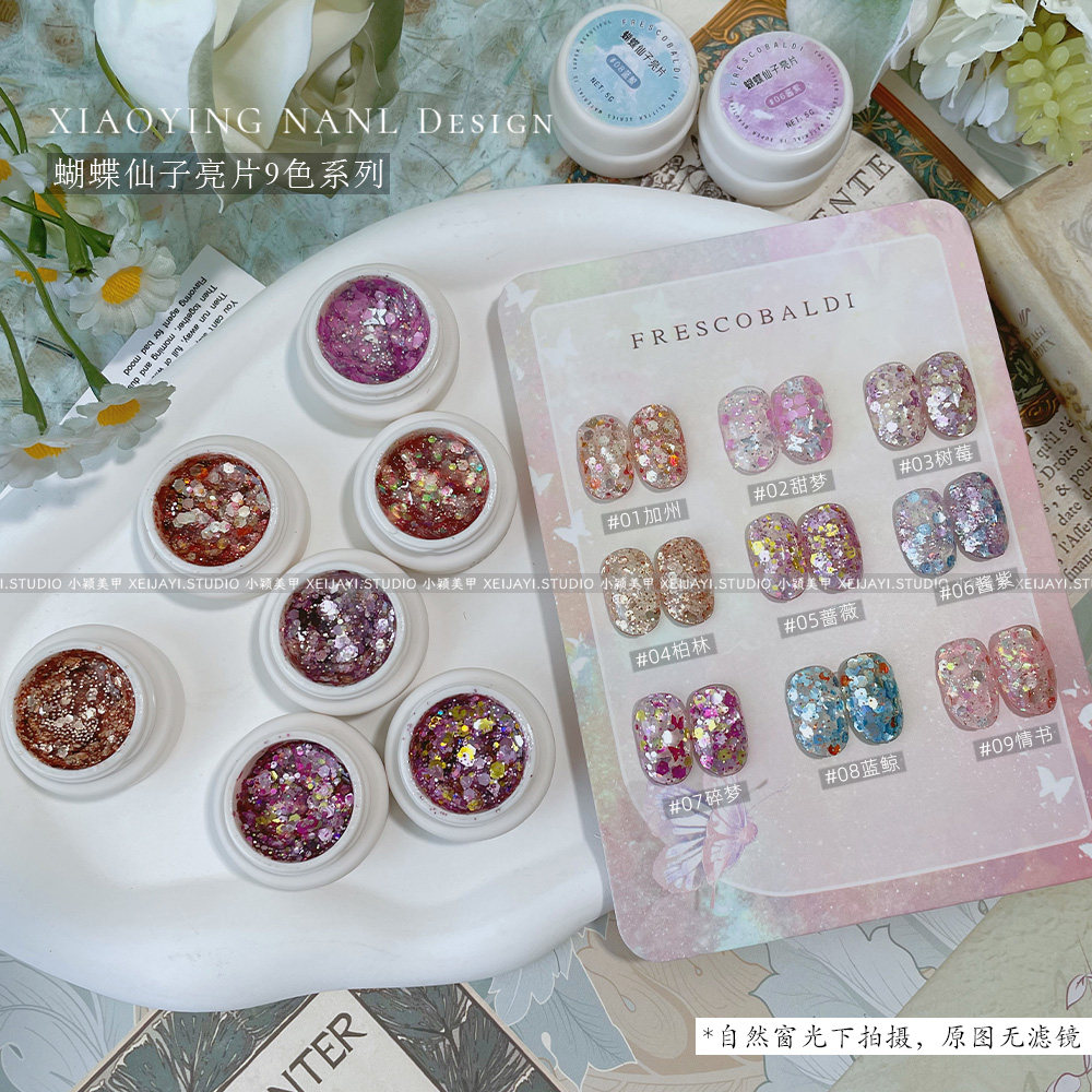 蝴蝶仙子爆闪大亮片指甲油胶2025新款春夏美甲店专用亮片胶彩色