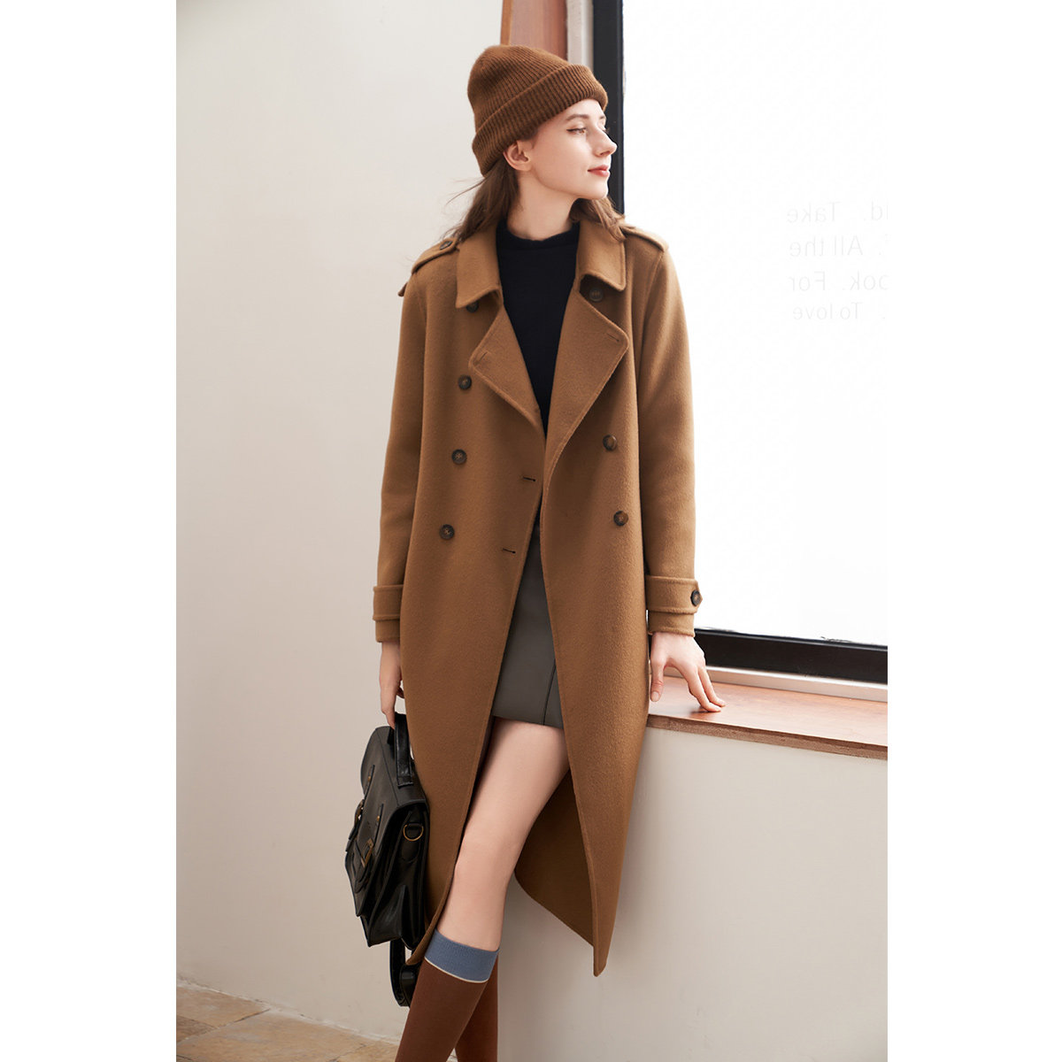 【美丽诺羊毛】诗篇专选雅丹风骆驼绒双面呢赫本风毛呢大衣冬
