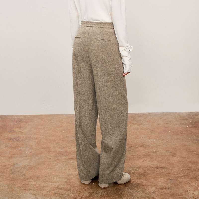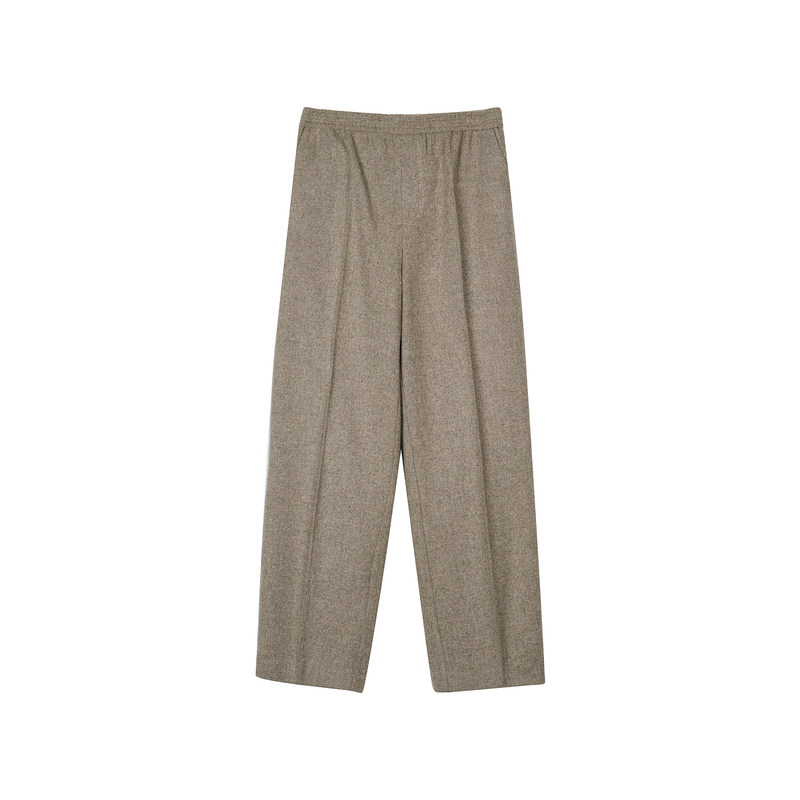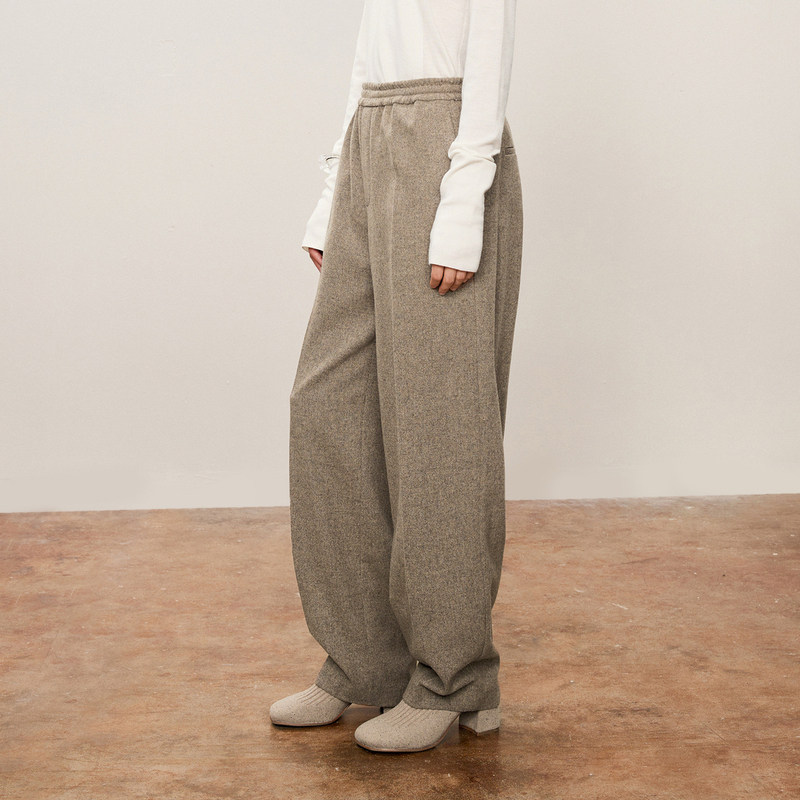 LESS进口绵羊毛阔腿休闲裤女秋冬松紧腰直筒纯色呢子裤2O9E10500