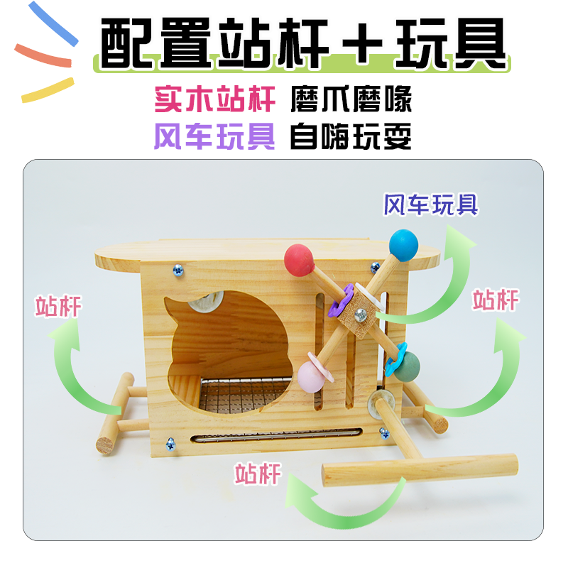 鹦鹉木屋夏季透气鸟窝小宠躲避屋秋千鸟笼装饰虎皮玄凤造景鸟用品