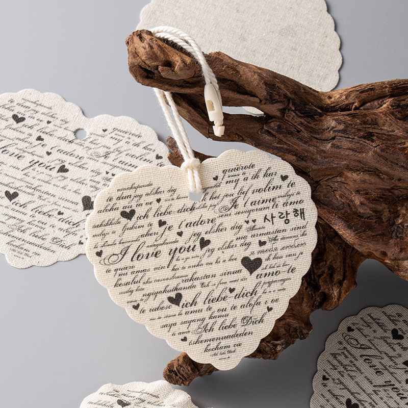 复古棉麻心形吊牌定制LOGO商标卡片温馨提示卡价格牌标签现货订做