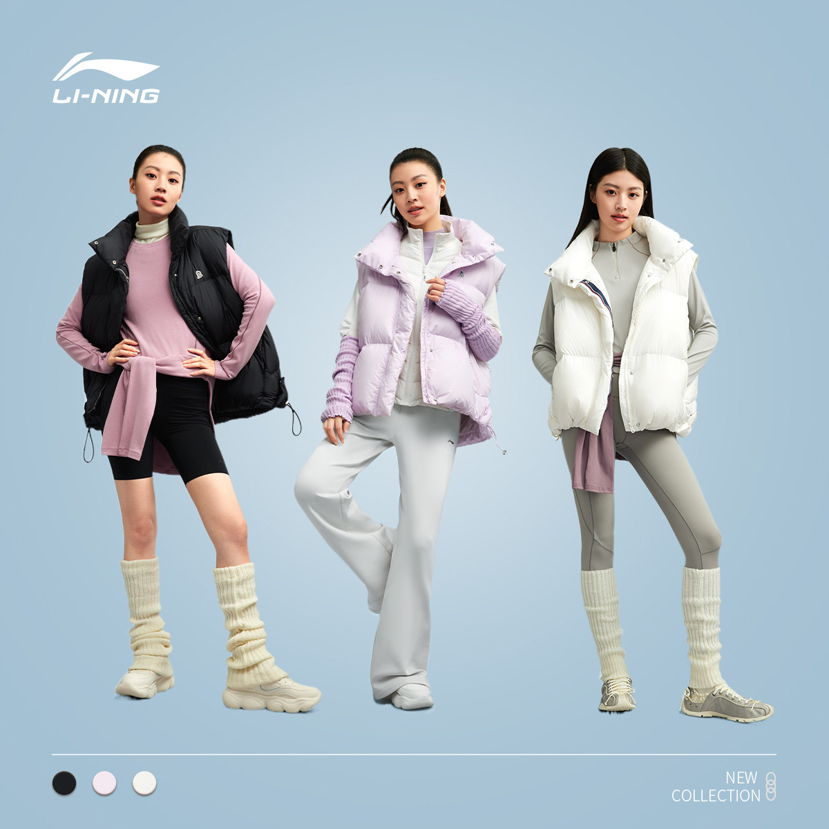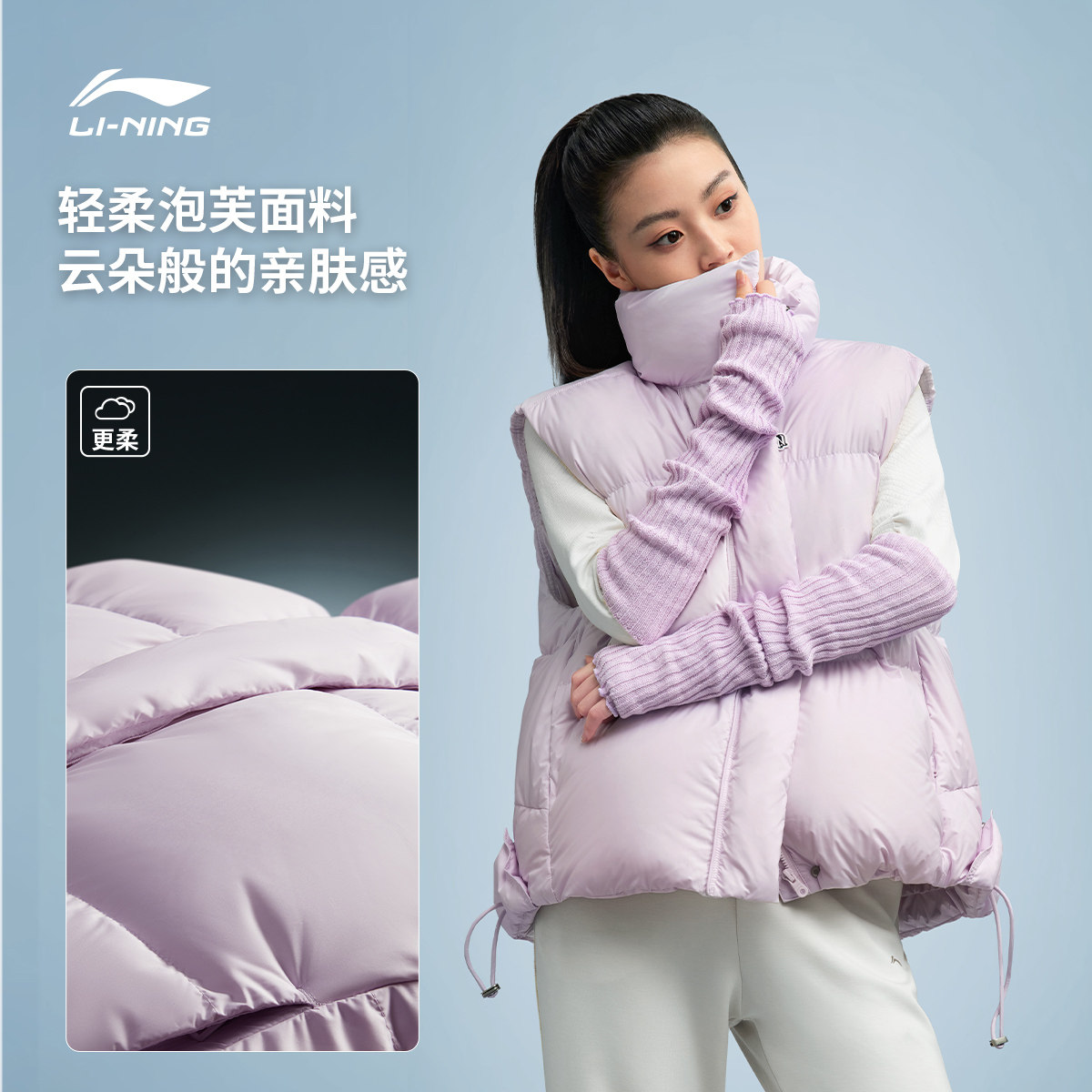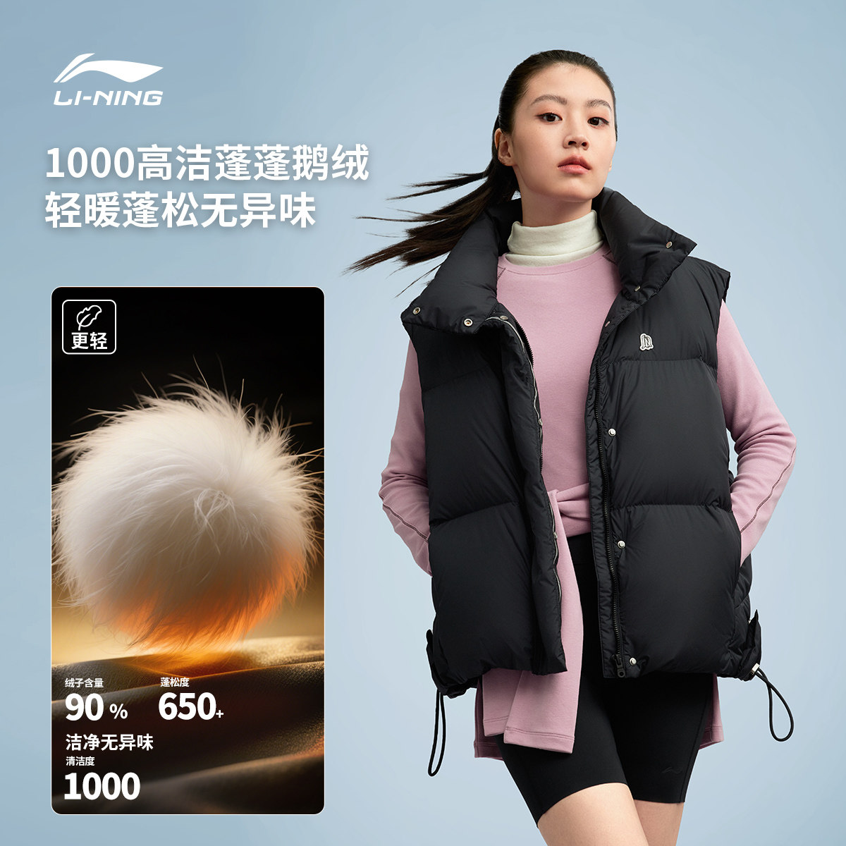 李宁火锅羽绒马甲丨女冬季新款泡芙鹅绒立领轻薄背心外套运动上衣