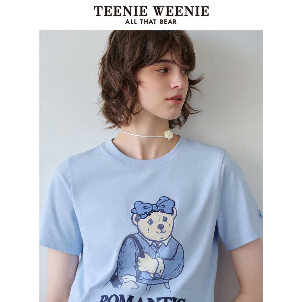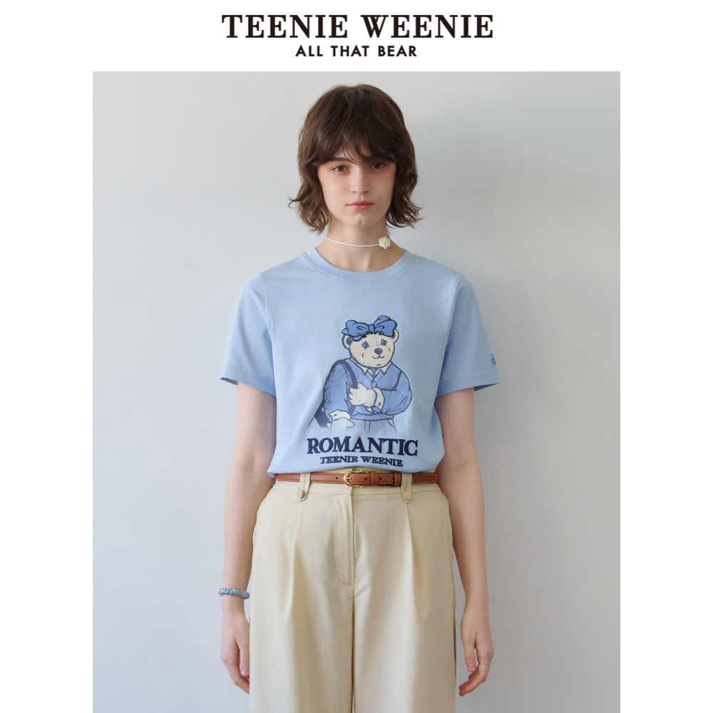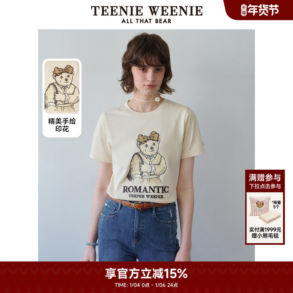 TeenieWeenie小熊奥莱女装简约休闲手绘风图案合体圆领短袖T恤衫