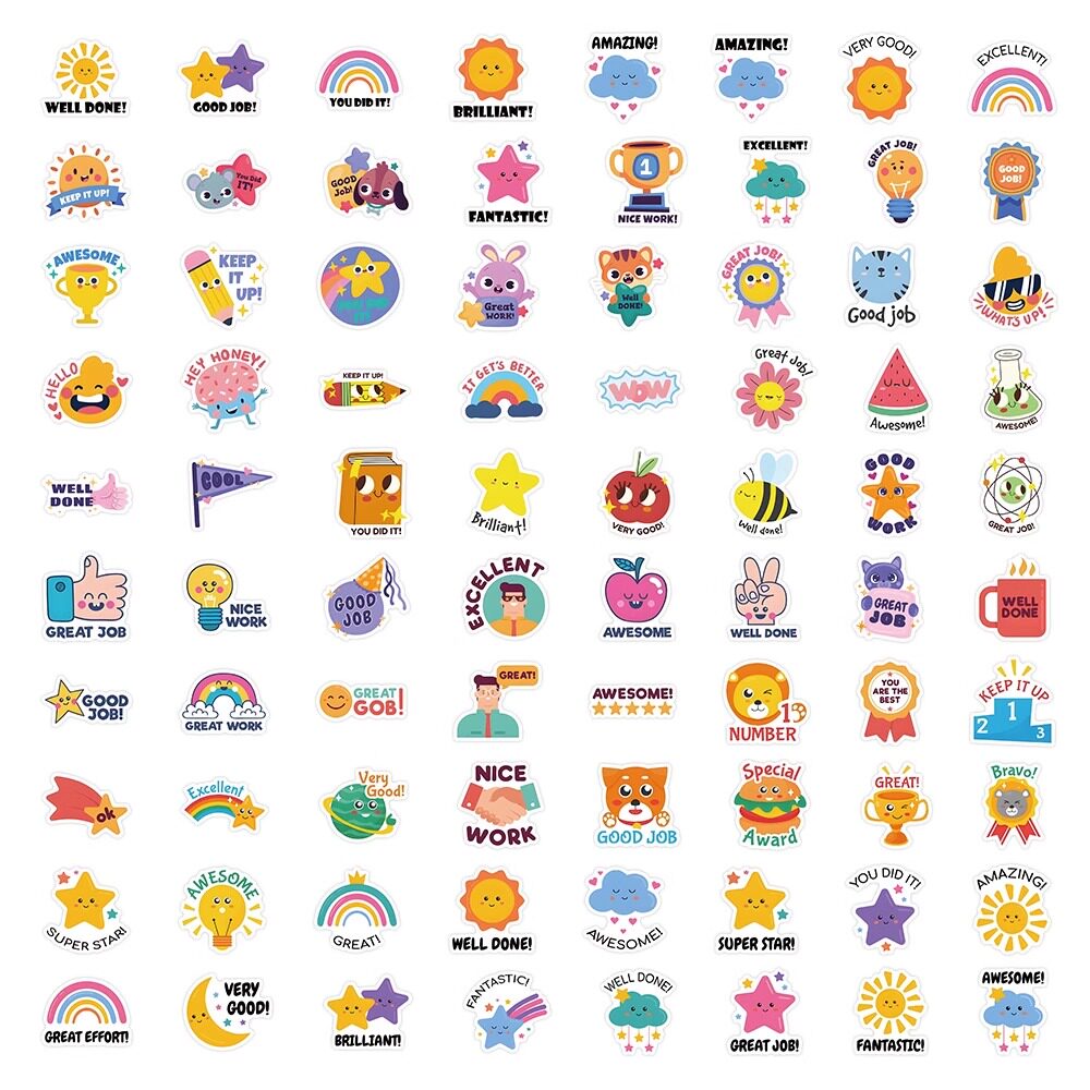 儿童奖励贴纸鼓励孩子励志文字个性彩绘涂鸦幼儿园老师专用贴防水