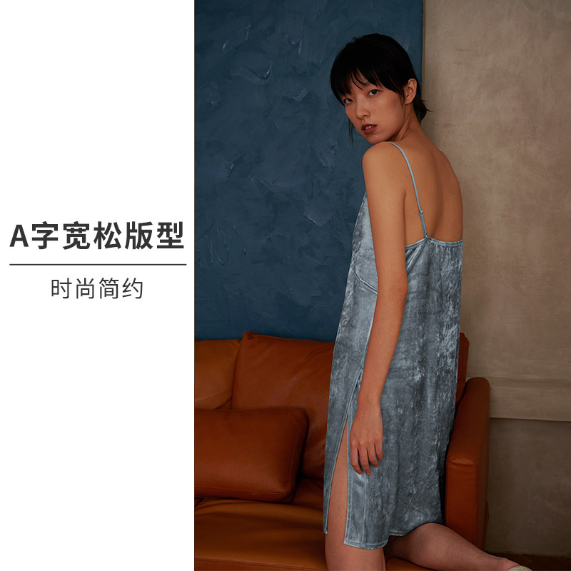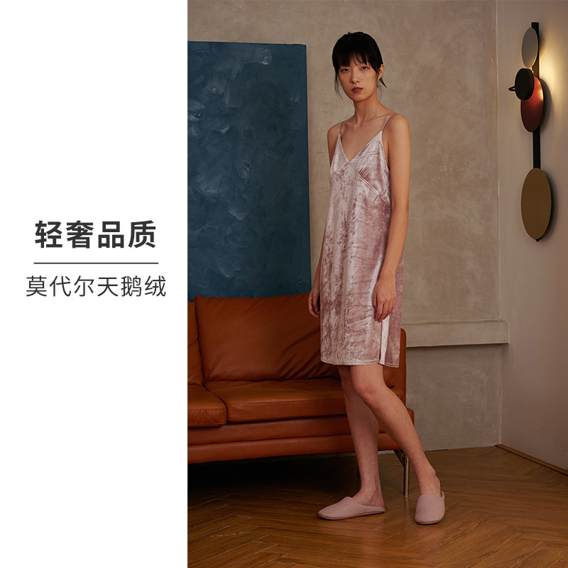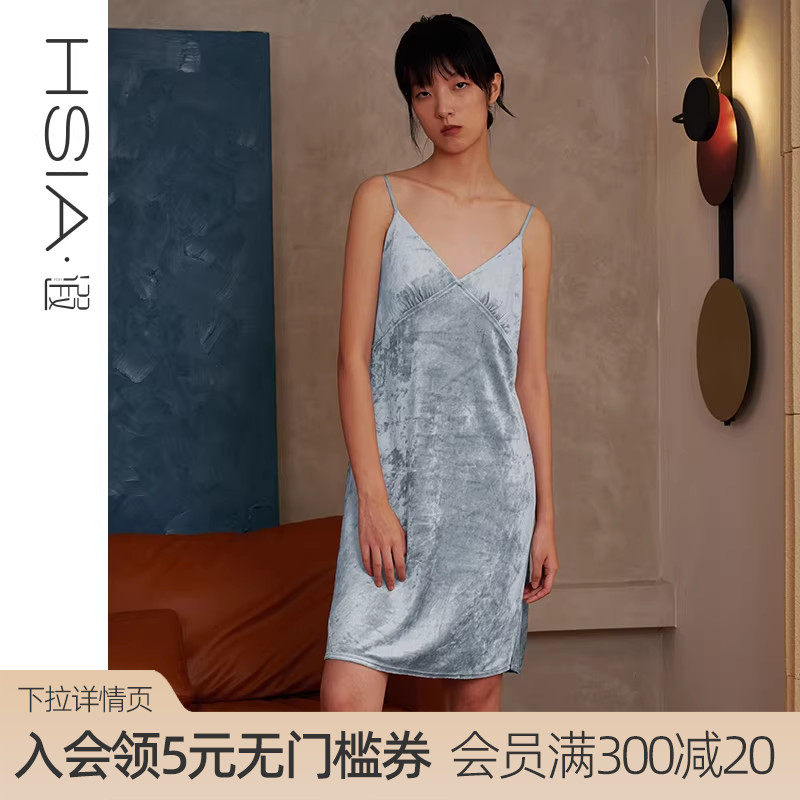 【断码清仓】HSIA遐 睡裙女高品质莫代尔天鹅绒深V外穿性感吊带裙