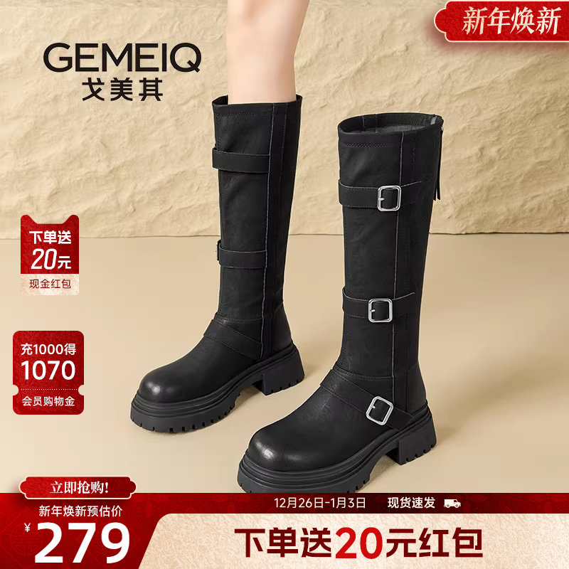 戈美其商场同款靴子女长筒靴2025冬季新款大筒围小个子高跟骑士靴