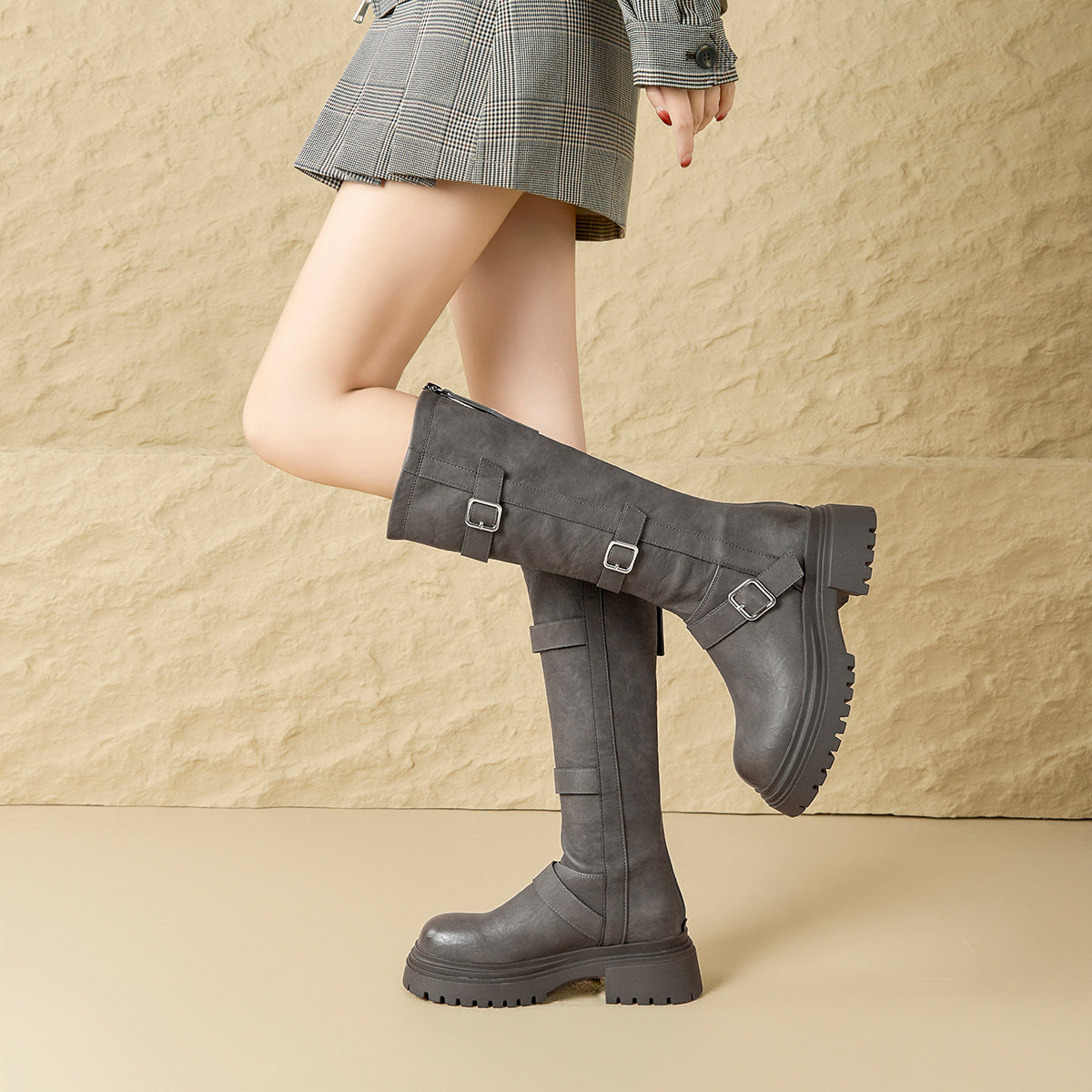 六点大叔厚底两穿美拉德骑士靴女秋冬新款小个子增高过膝长筒靴子