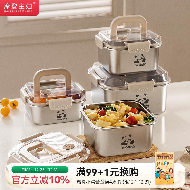 摩登主妇316L不锈钢饭盒上班族大容量打包水果便当盒手提保鲜餐盒