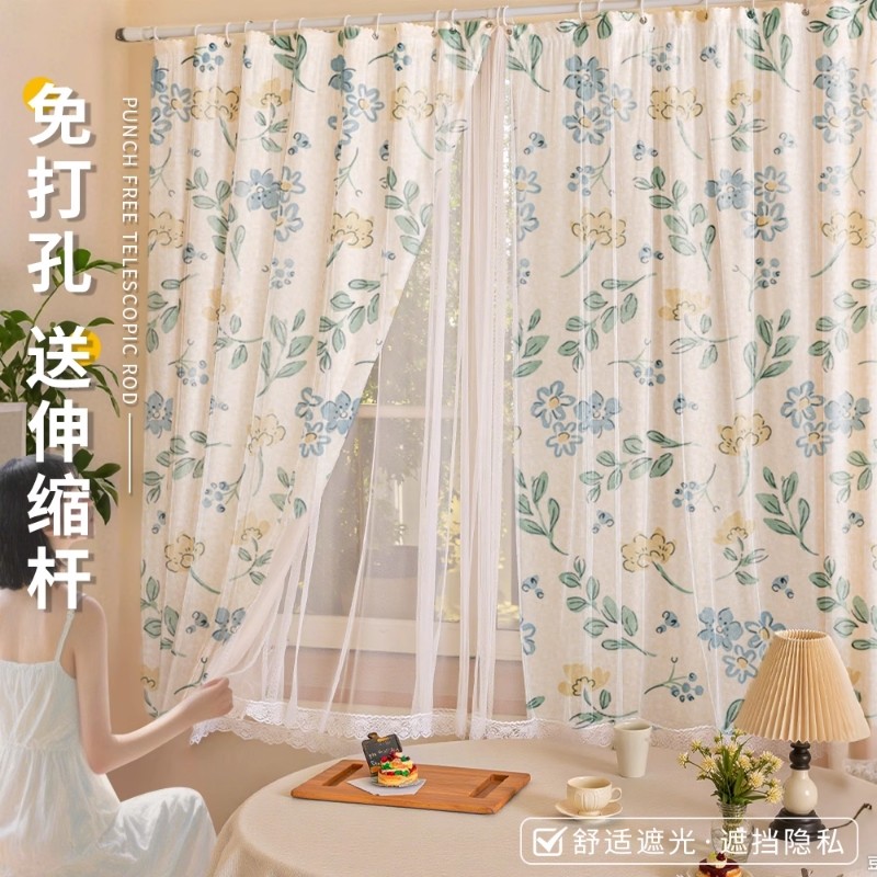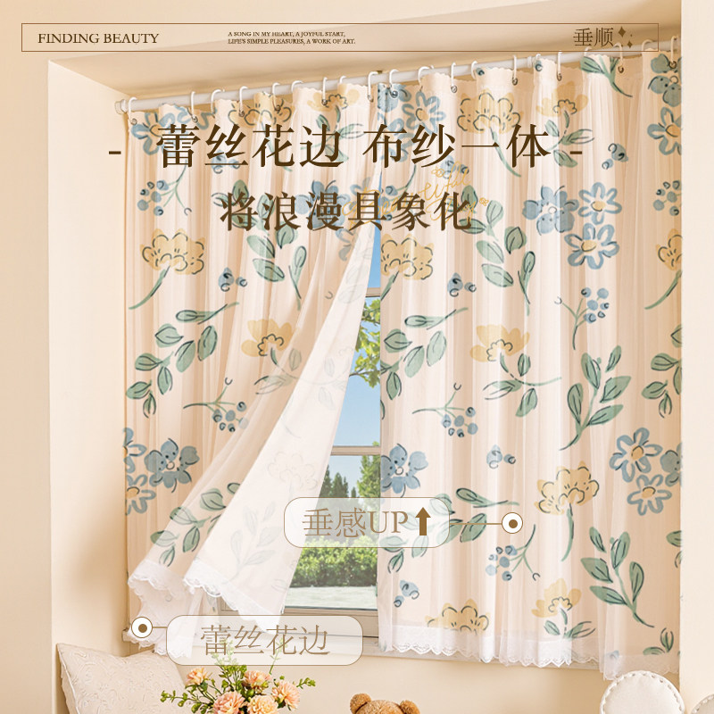 小清新窗帘免打孔高颜值隔断阳台遮光儿童房遮阳魔术贴纱帘窗纱