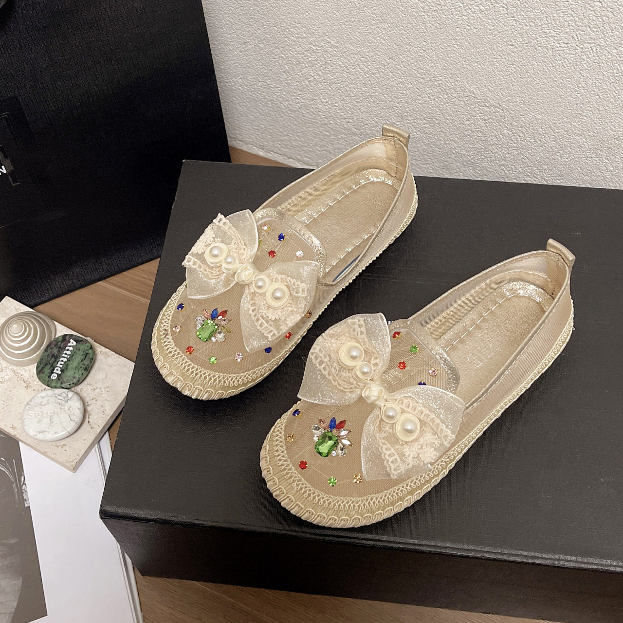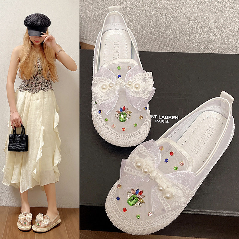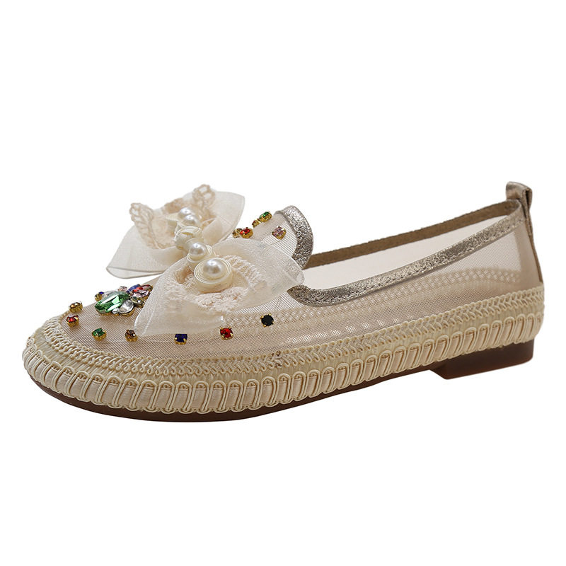 水钻网面渔夫鞋女2023春夏季新款圆头软底舒适百搭女式休闲鞋网鞋