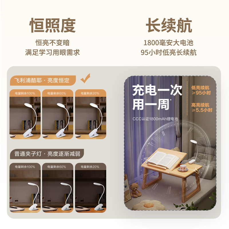 飞利浦充电台灯护眼学习专用宿舍床头阅读灯夹子可夹式新款工作灯