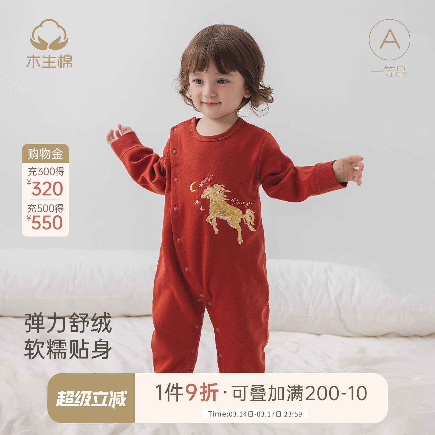 【舒绒棉】男女宝宝连体衣秋冬季婴儿红色喜庆新年服弹力哈衣爬服