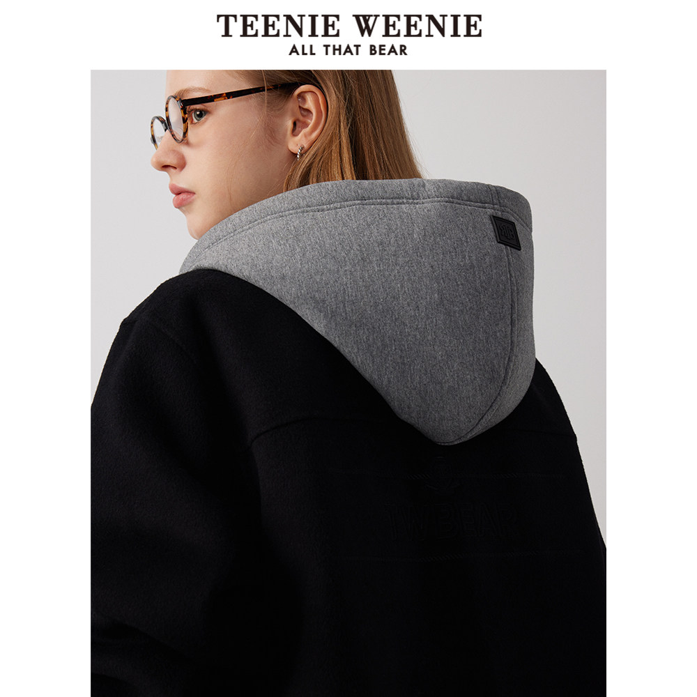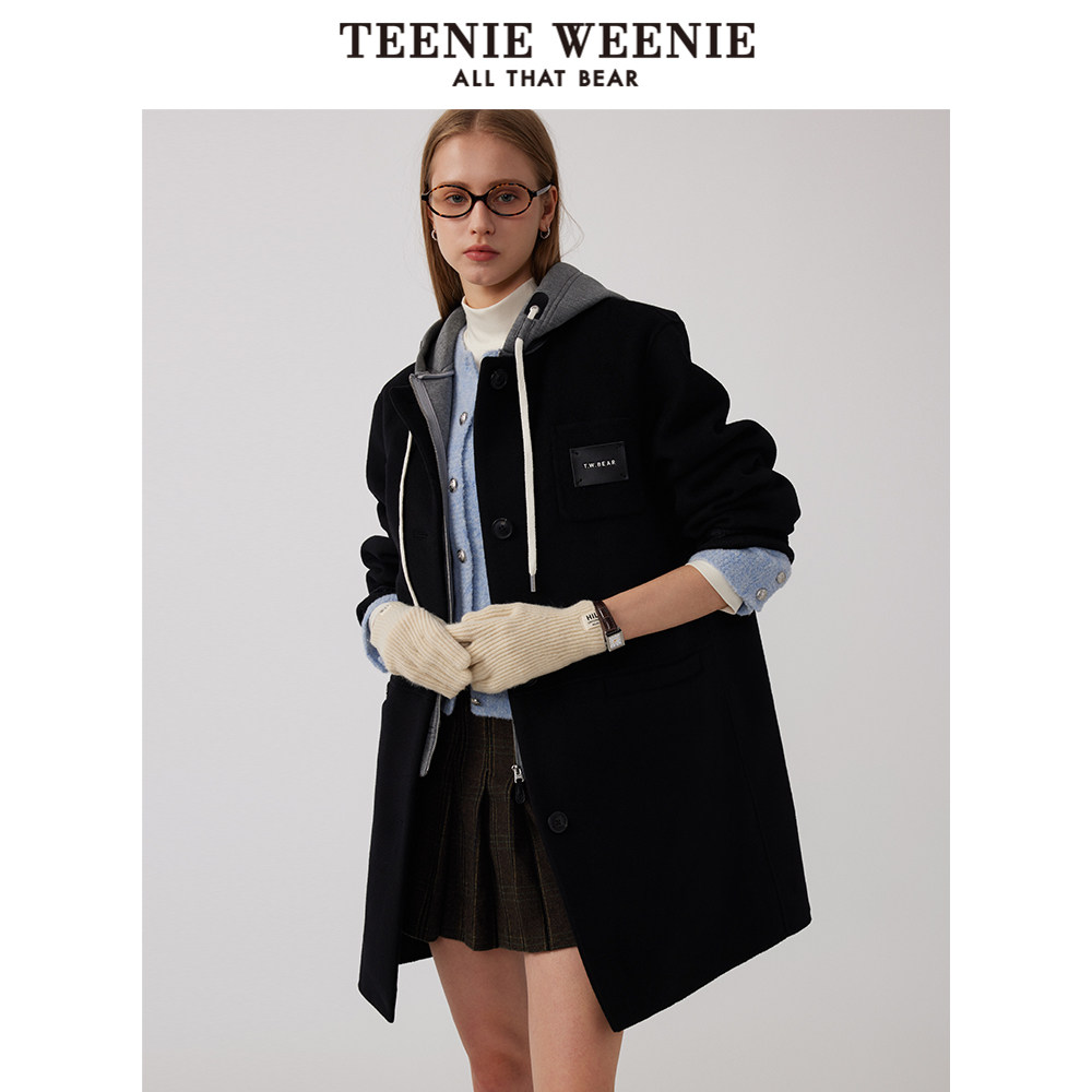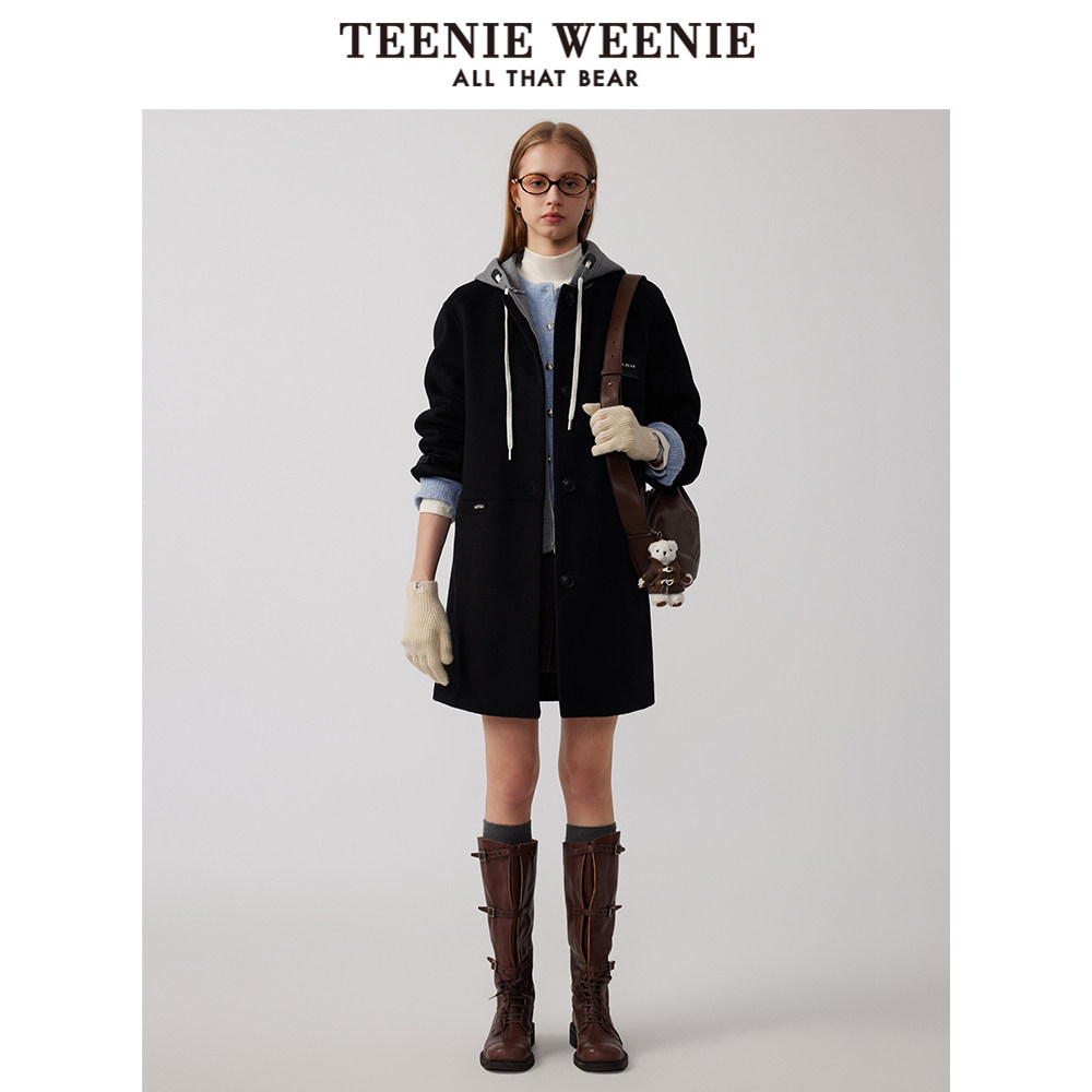 TeenieWeenie小熊奥莱两件套通勤双面毛呢大衣卫衣连帽外套