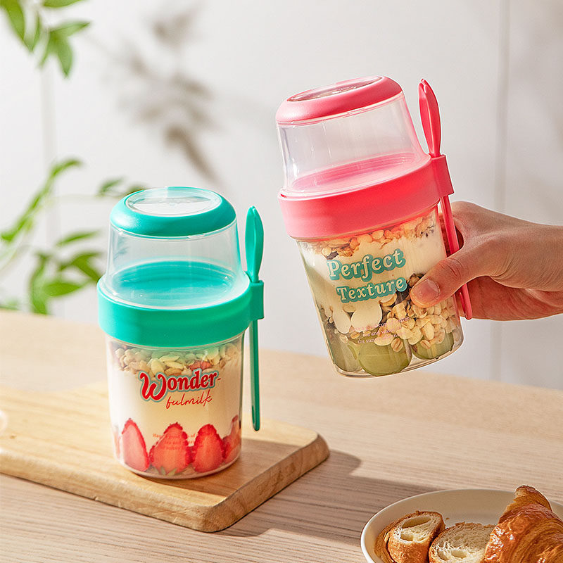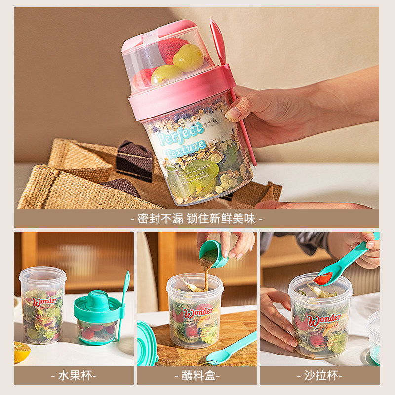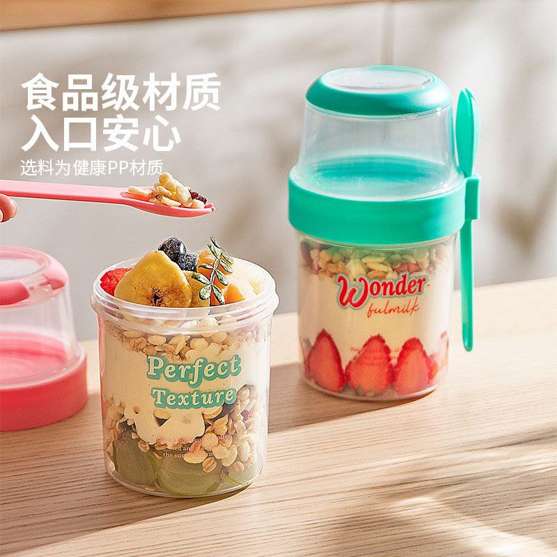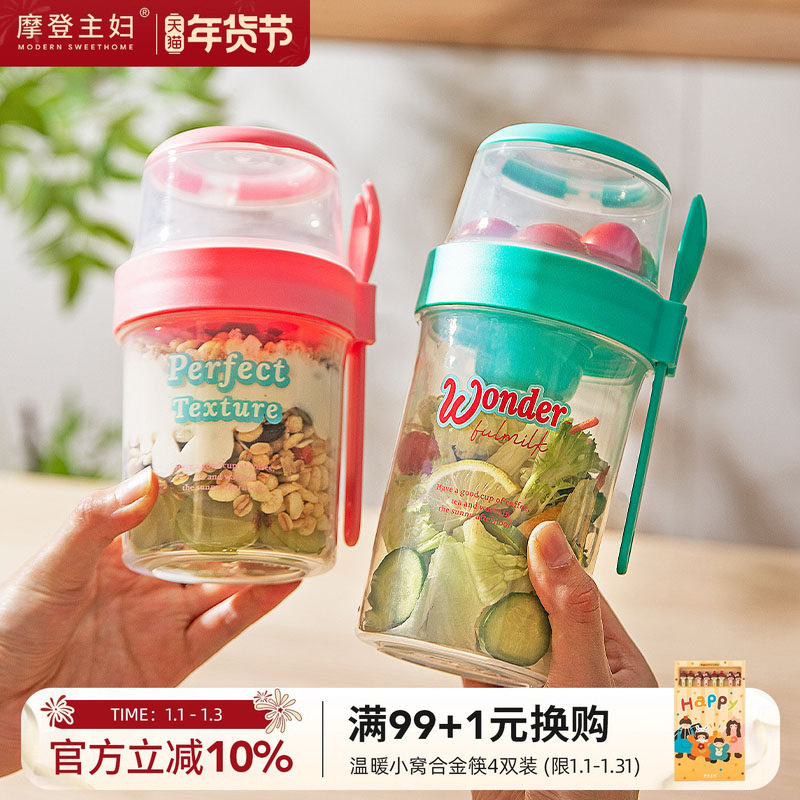 摩登主妇隔夜燕麦杯带盖带勺酸奶杯碗外带便携水果便当盒沙拉杯子