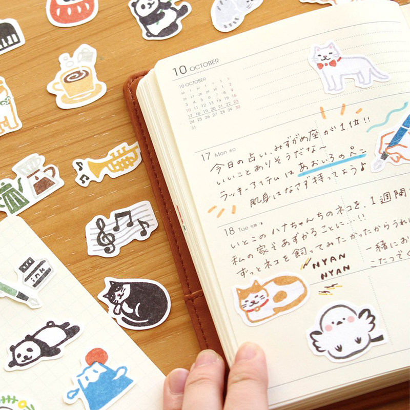 日本古川纸工限定柴犬猫咪熊猫乐器手帐拼贴贴纸包