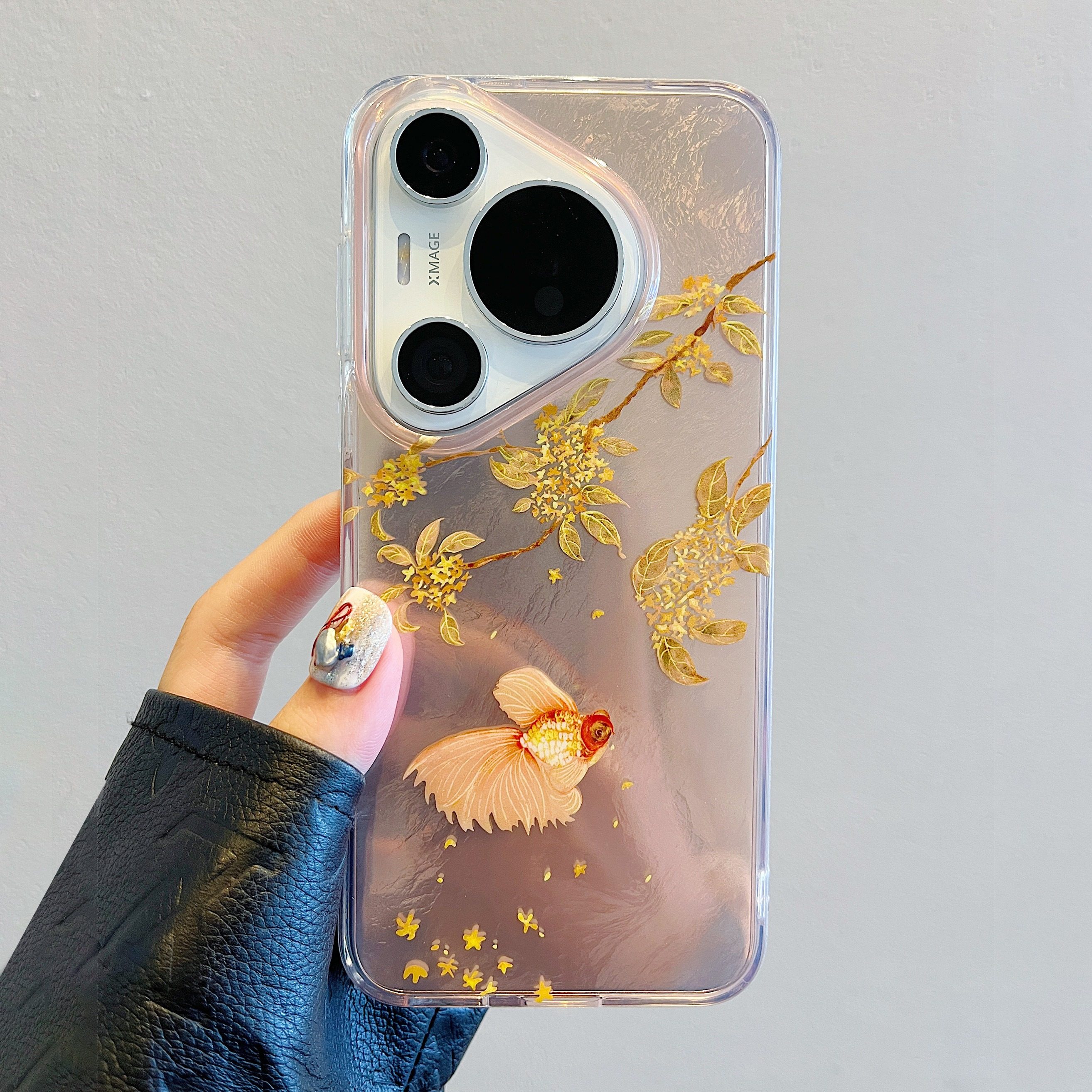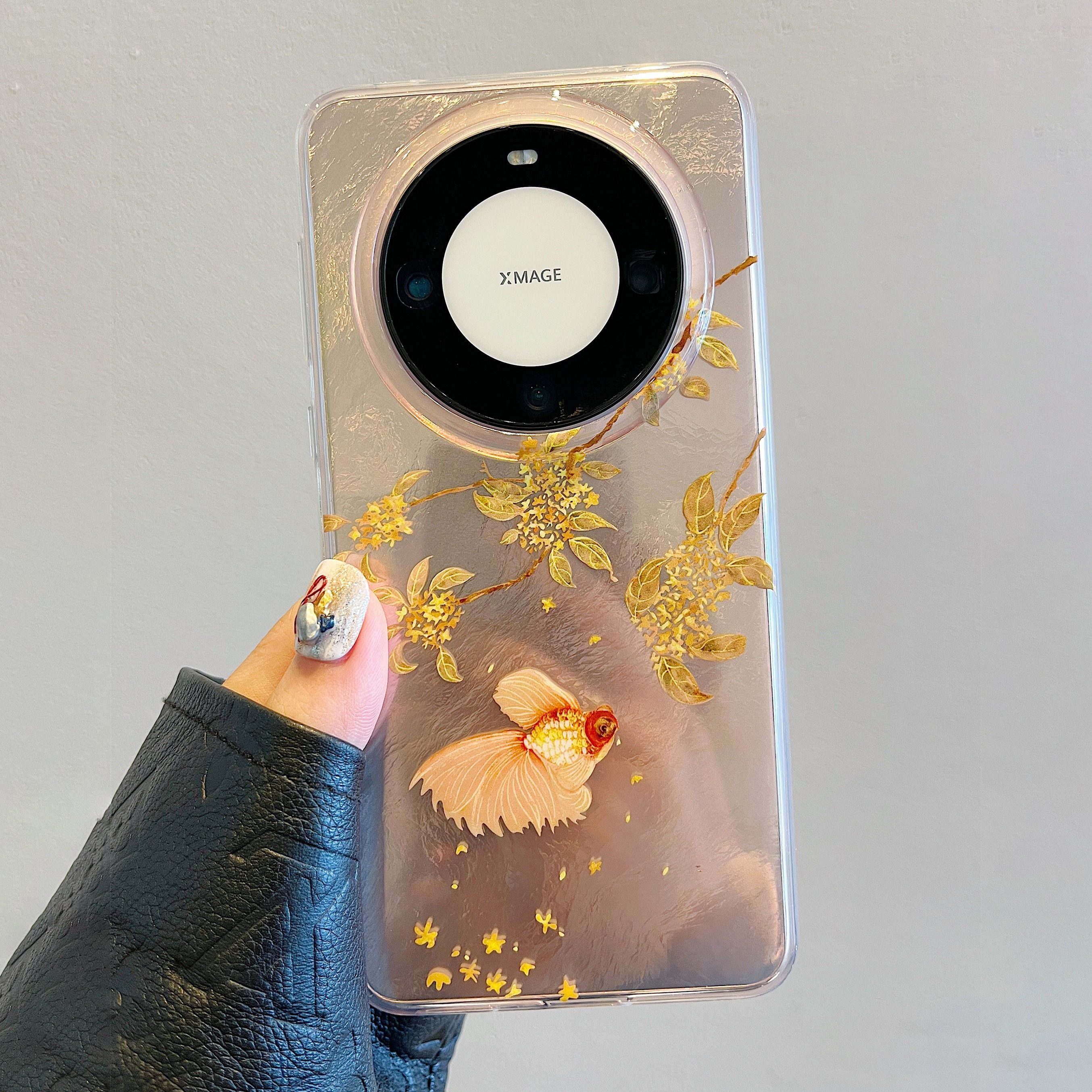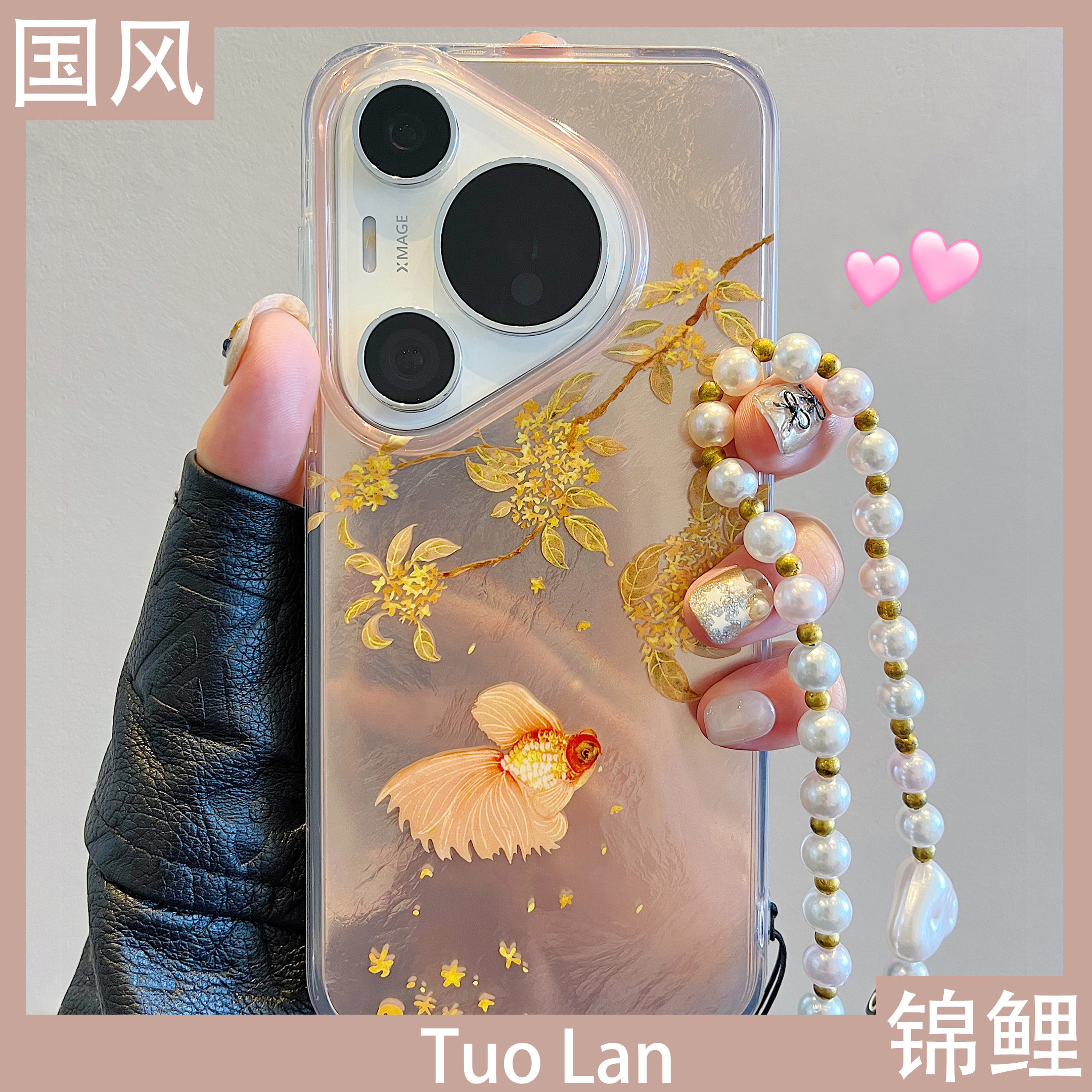 拓岚 适用华为mate60pro+新款手机壳高级感pura70pro新中式双层渐变金色锦鲤鱼Pura70ultra挂绳硅胶防摔女潮