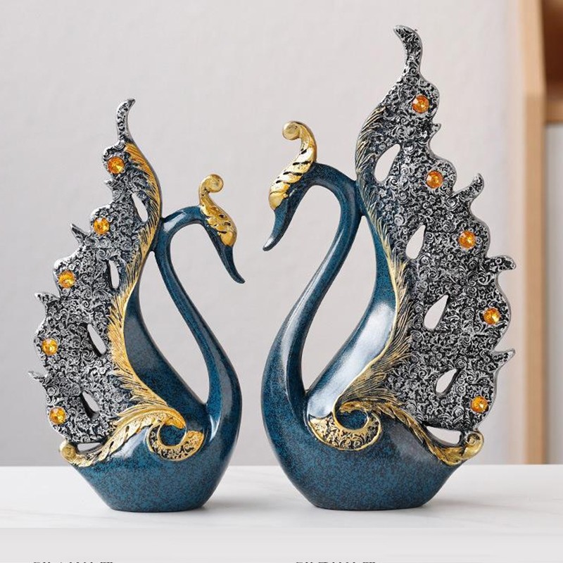创意礼物欧式酒柜电视柜客厅家居工艺装饰树脂孔雀摆件两款选天鹅