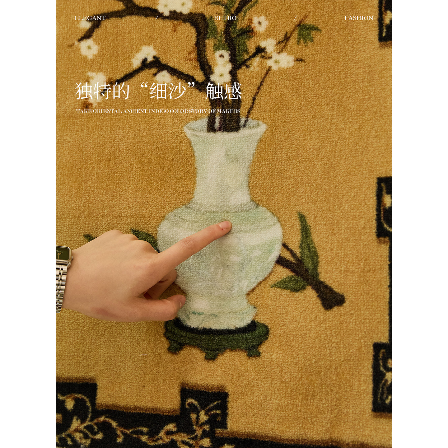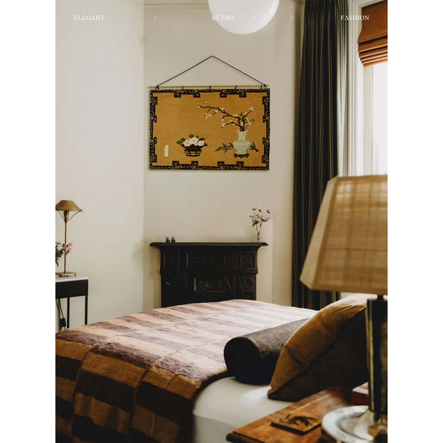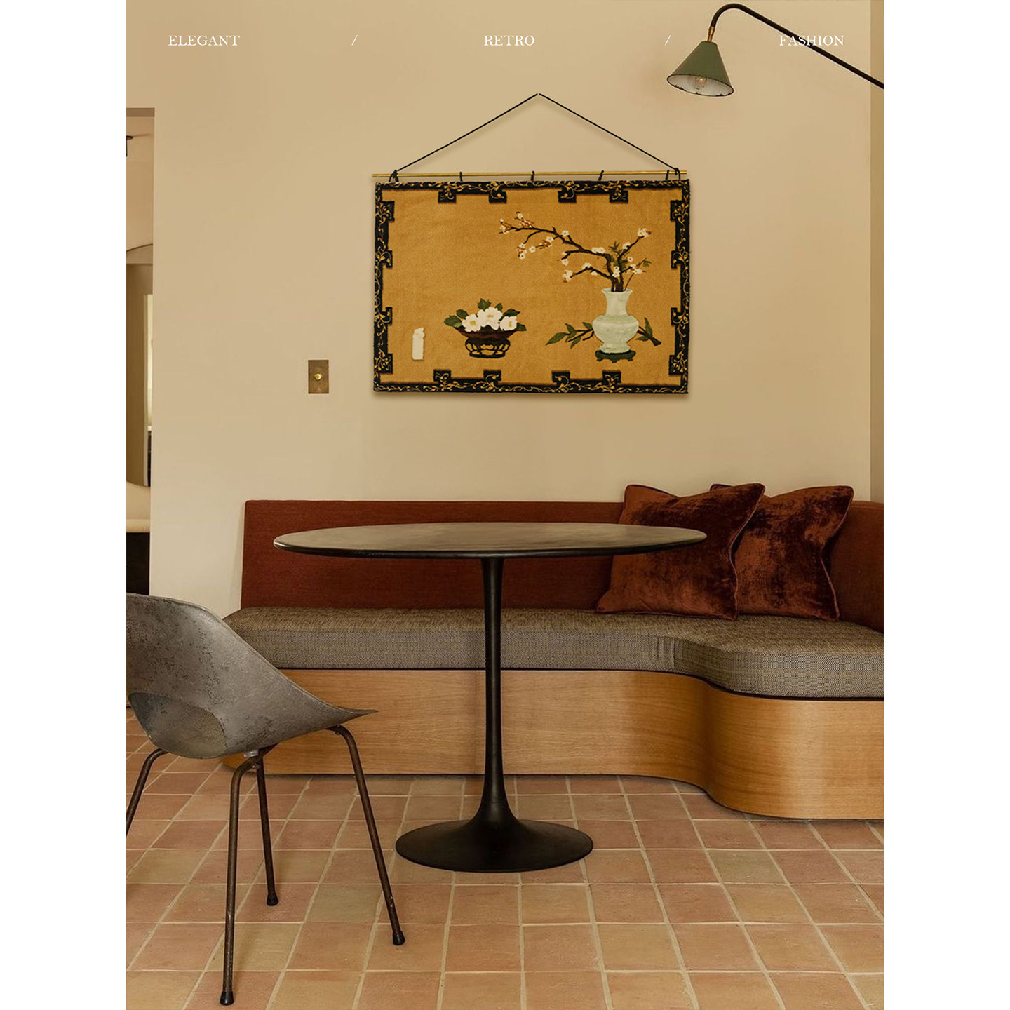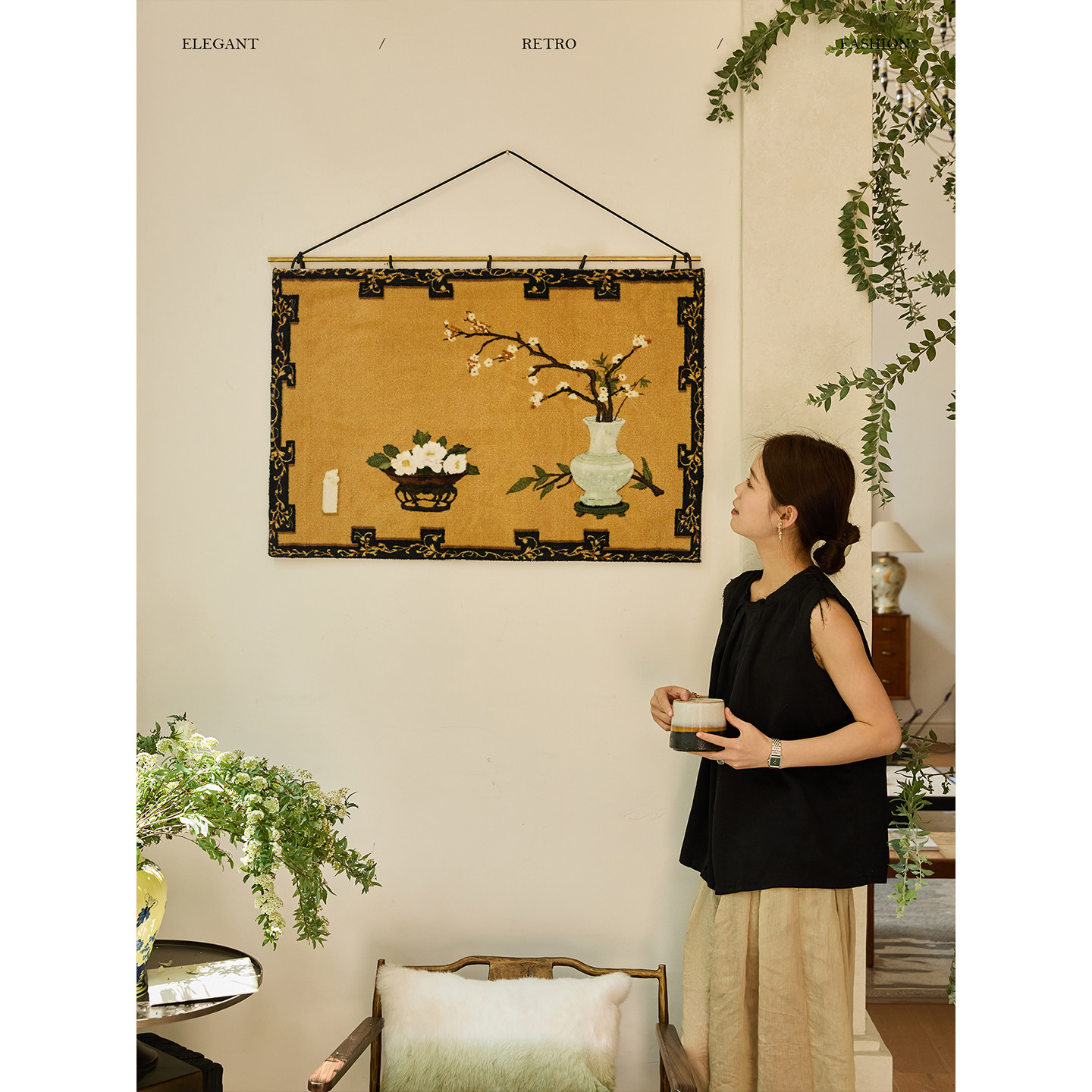 蜡笔派东方花叙挂画新中式古典氛围感铜杆挂毯画客厅背景画装饰画