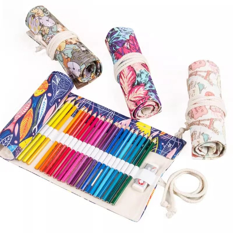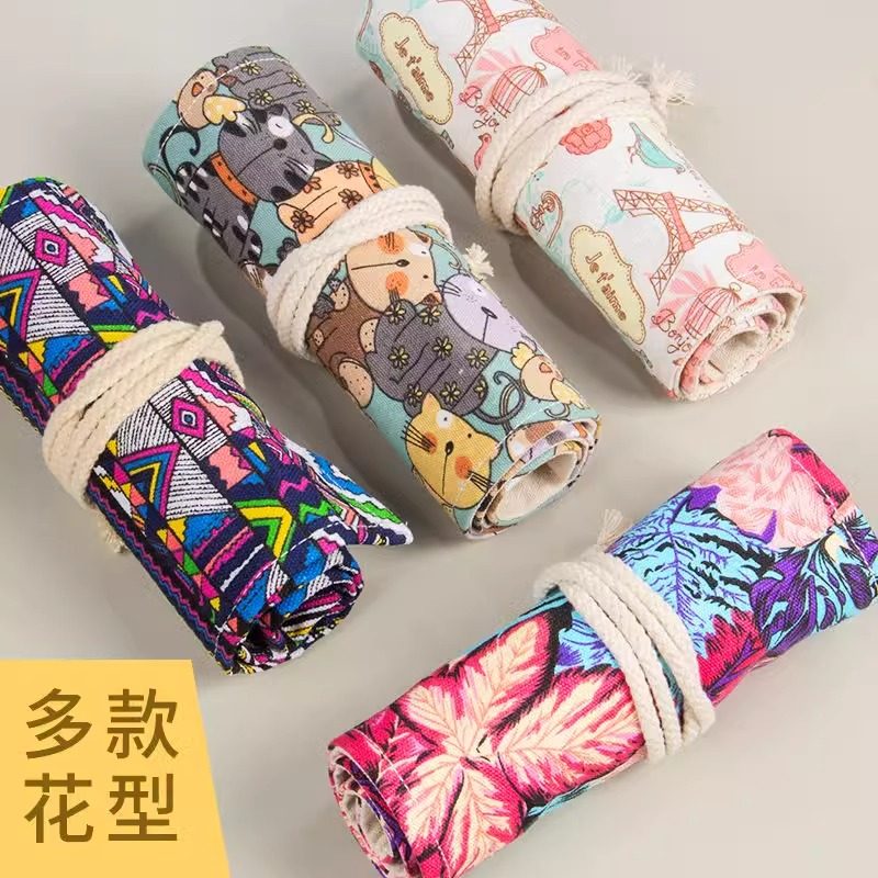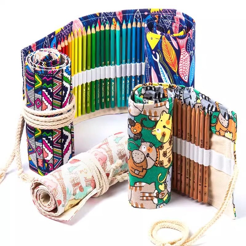 手工帆布卷笔袋36/48/72孔大容量笔帘男女生素描彩铅笔帘绘画专用