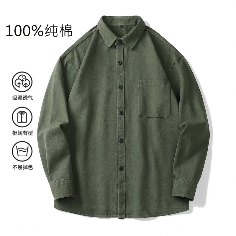 2025秋季重磅纯棉水洗园艺风衬衫简约时尚潮流中性长袖衬衣外套
