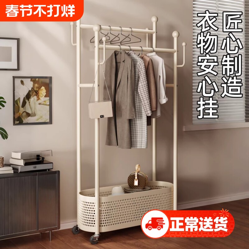 衣架落地卧室奶油风挂衣架家用铁艺简易晾衣架室内客厅移动衣帽架