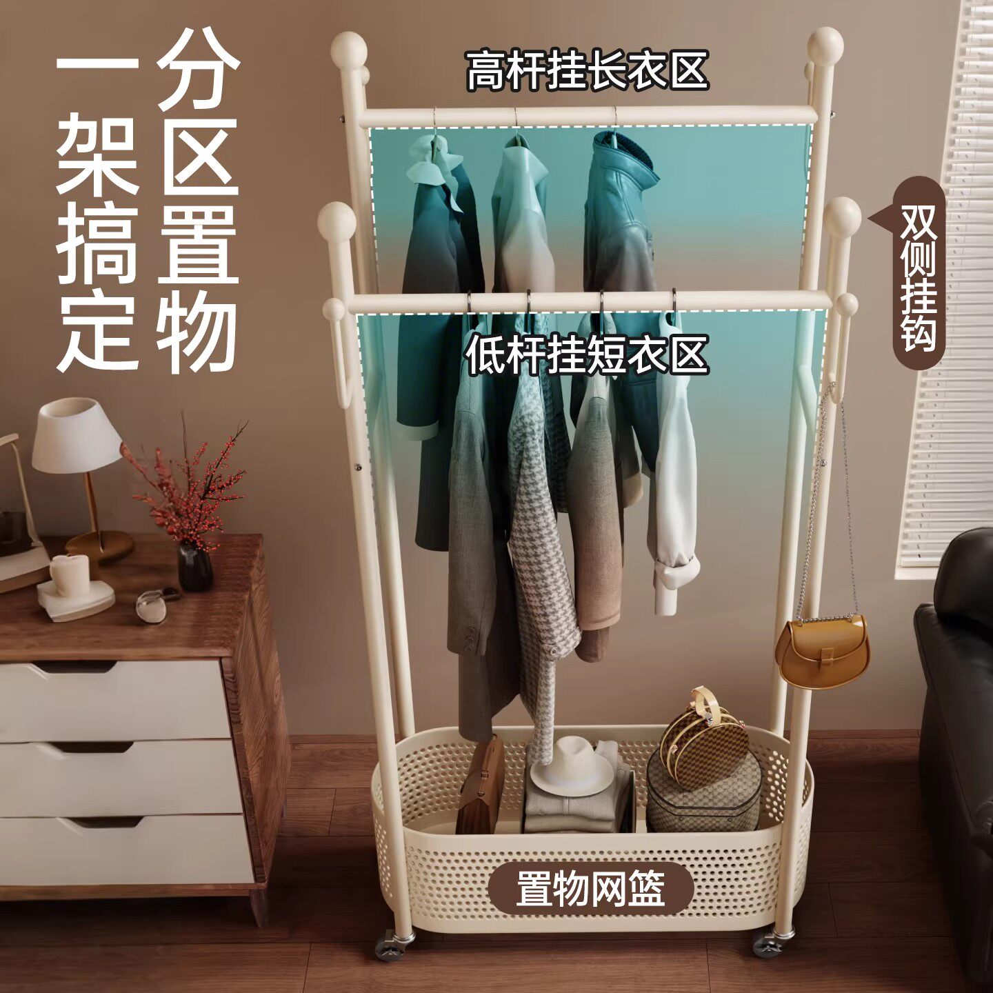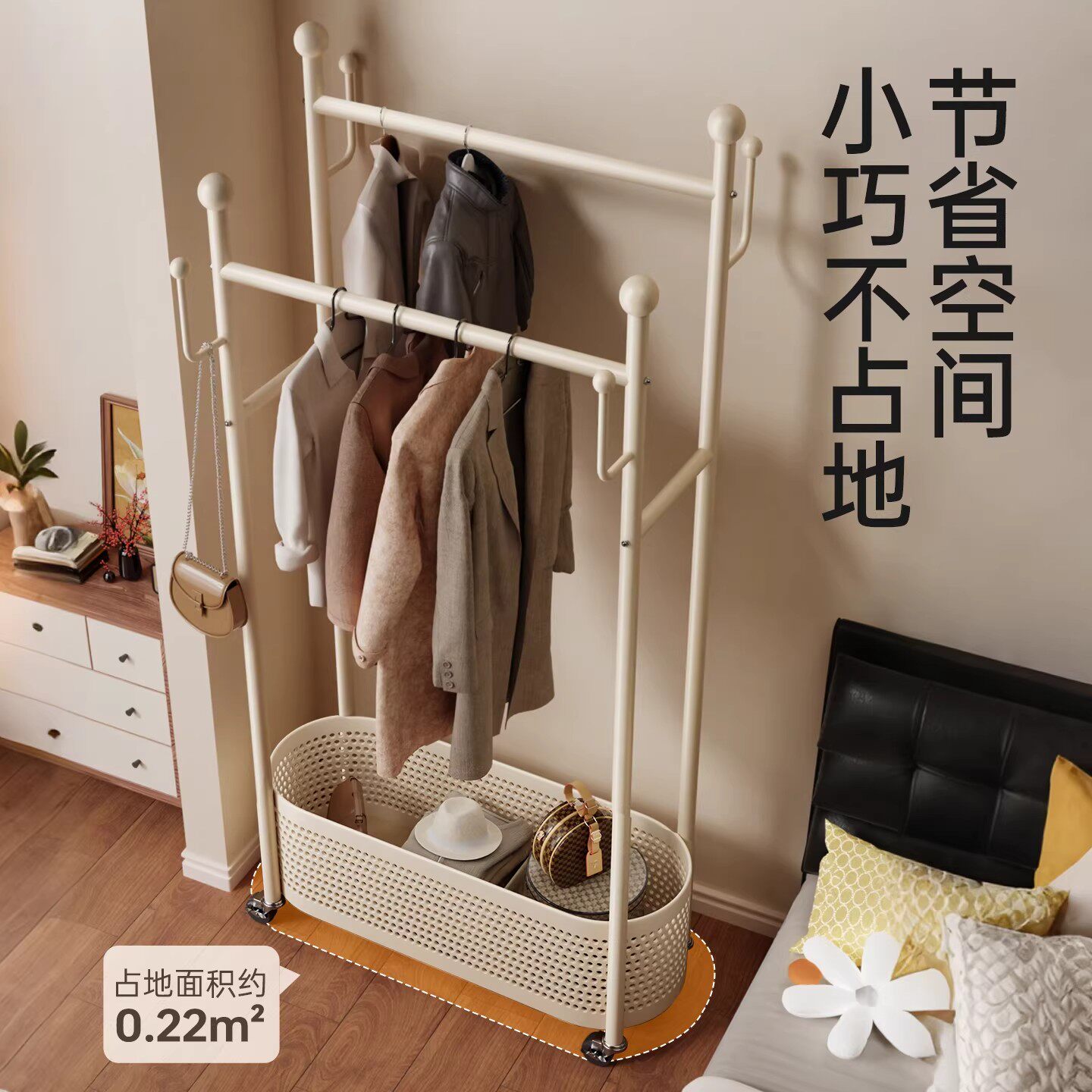 【李佳琦新年厨房好物场】速立普衣帽架家用卧室落地挂衣架奶油风